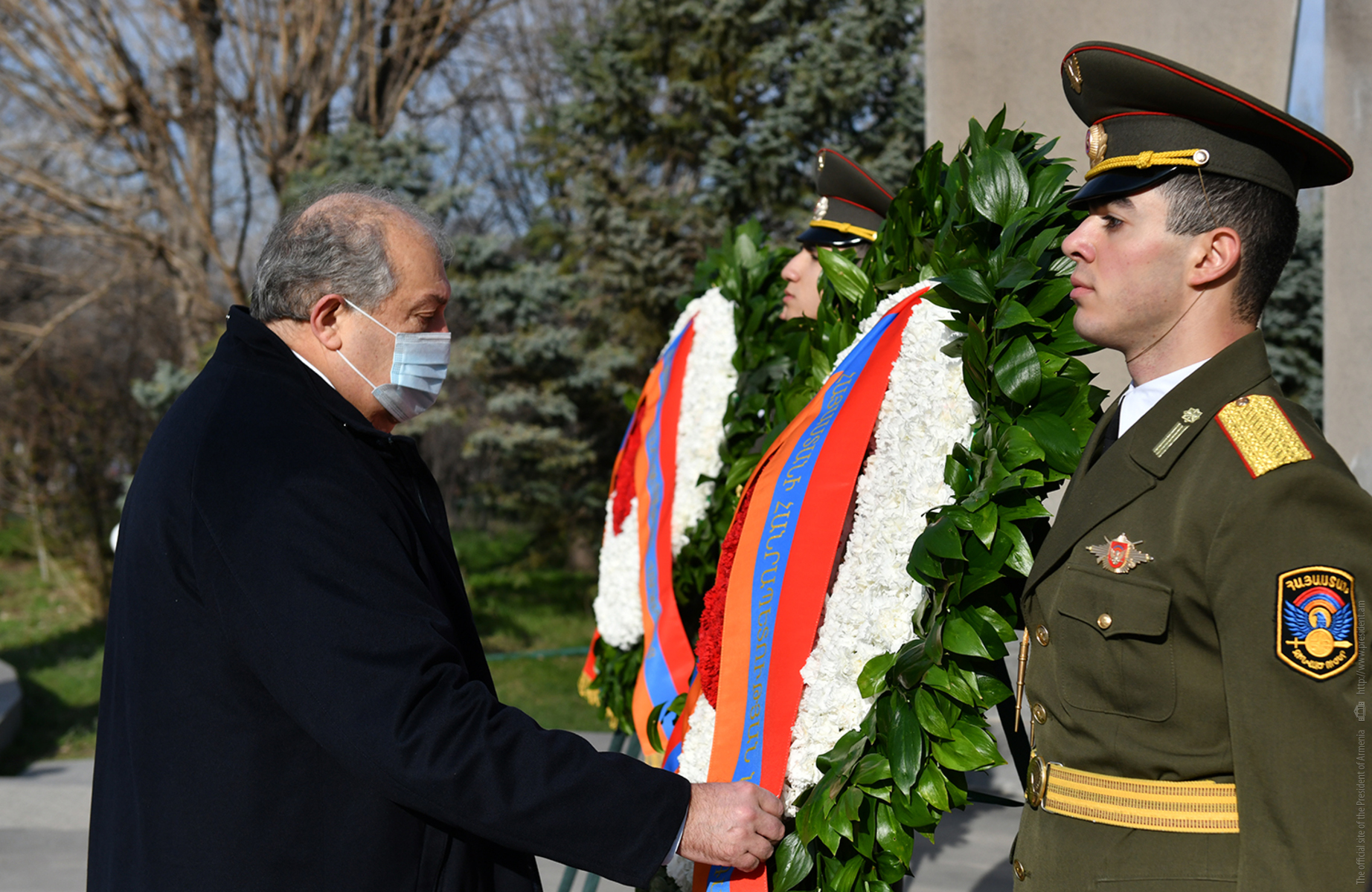 Հանրապետության նախագահը ծաղիկներ է դրել նաև Հայաստանի Ազգային հերոս, Արցախի հերոս, Հայաստանի Հանրապետության պաշտպանության առաջին նախարար Վազգեն Սարգսյանի, Հայաստանի Ազգային հերոս Մոնթե Մելքոնյանի, զորավար Անդրանիկի շիրիմներին:
