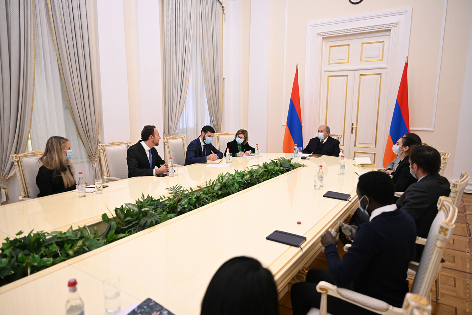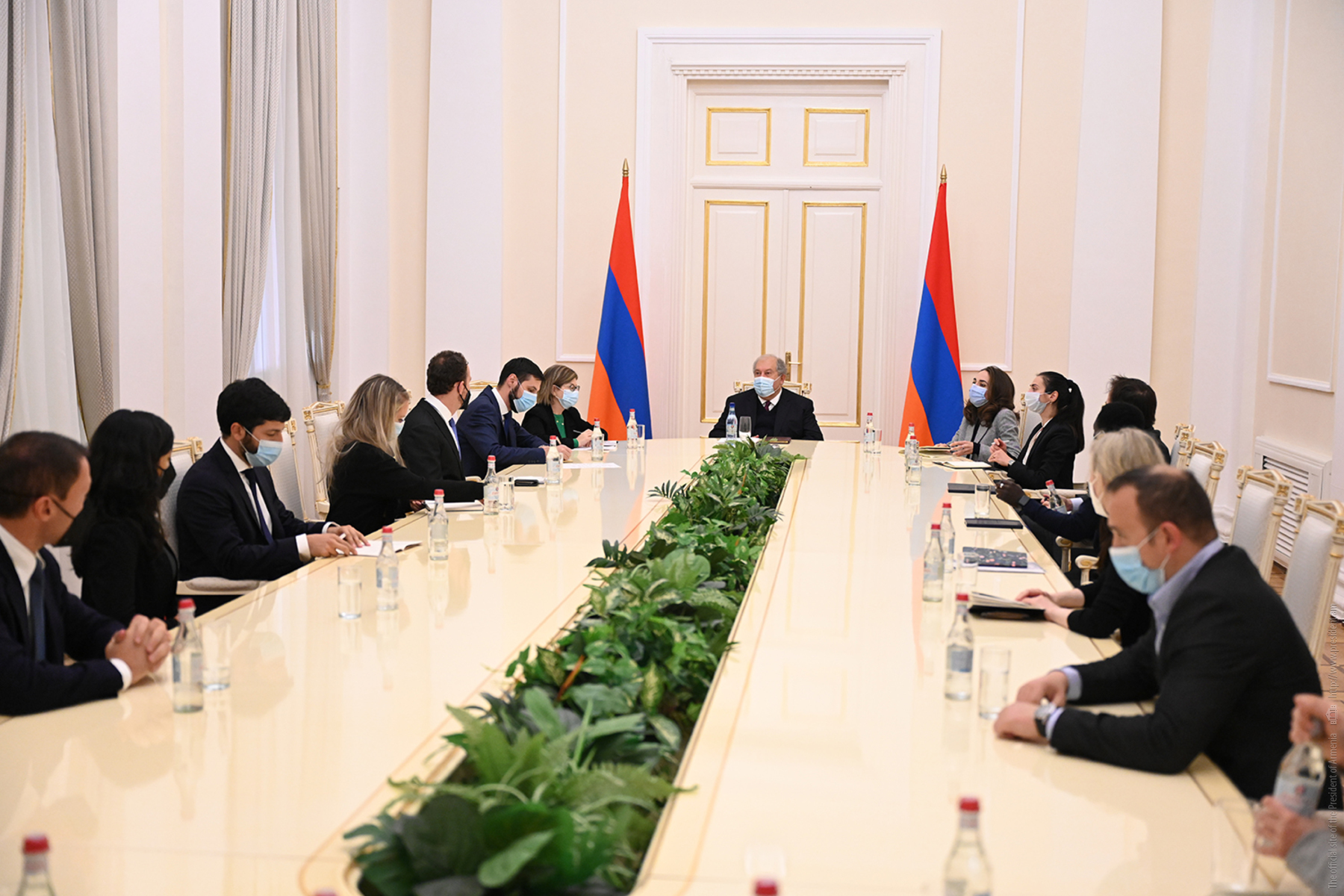 Հանդիպման մասնակիցները նախագահ Արմեն Սարգսյանին հարցեր են ուղղել Լեռնային Ղարաբաղի հակամարտության, վերջին տարիների զարգացումների ու 44-օրյա պատերազմի, Հայաստանում հետպատերազմյա իրավիճակի, մեր երկրում ժողովրդավարության մակարդակի, ինչպես նաև ապագային միտված ծրագրերի մասին: