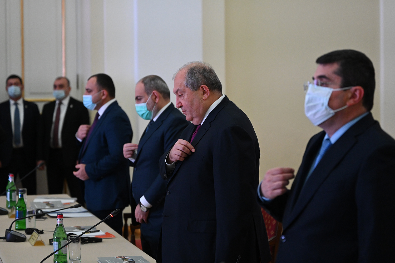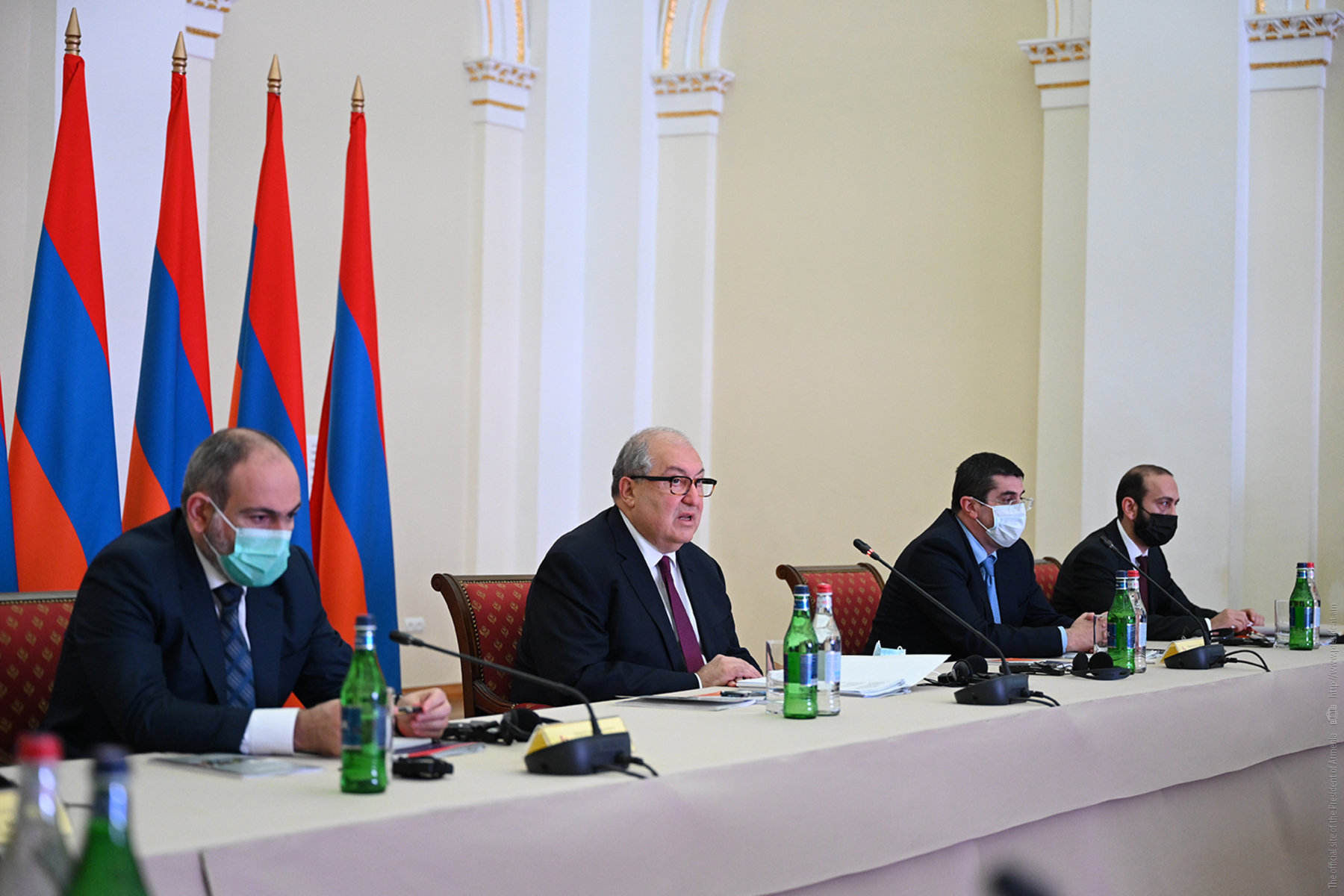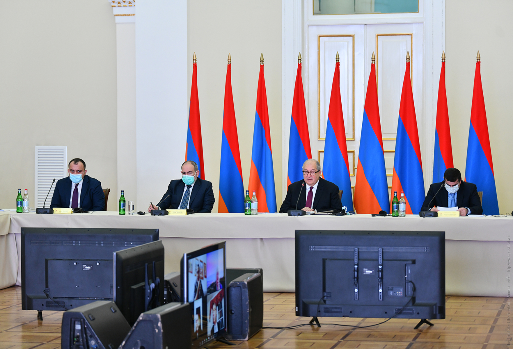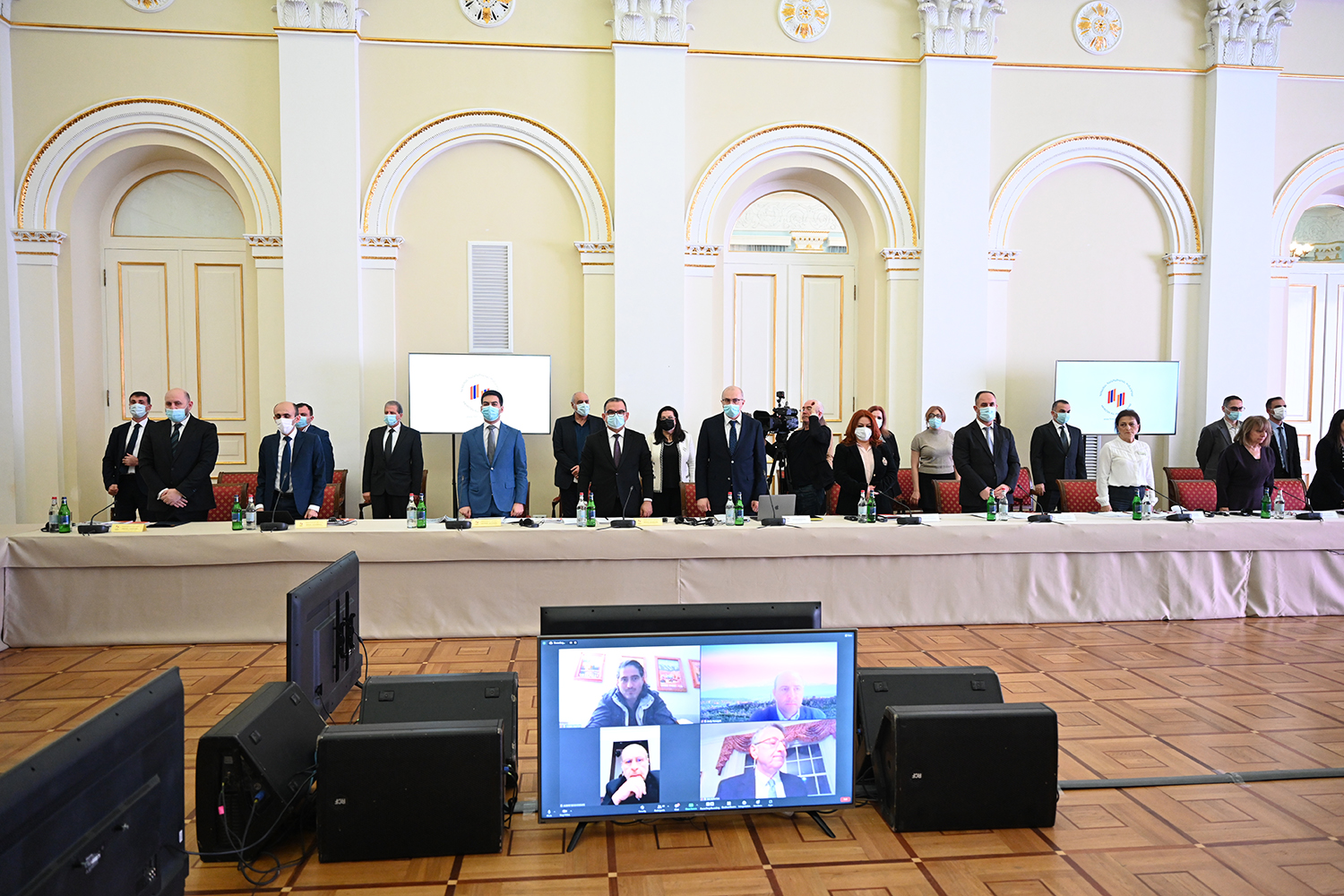 Բացելով նիստը՝ նախագահ Սարգսյանը նշել է, որ այն անցկացվում է փորձություններով ու մարտահրավերներով լի բարդ ժամանակահատվածում՝ ի դեմս Ադրբեջանի կողմից Արցախի դեմ սանձազերծած պատերազմի, Հայաստանի ինքնիշխան տարածքի հանդեպ ռազմական ագրեսիայի, ինչպես նաև համավարակի հետևանքների: «Ցավոք, ունենք կորուստներ, անհետ կորածներ, գերեվարվածներ,- ասել է նախագահը: -Առաջարկում եմ մեկ րոպե լռությամբ հարգել հայրենիքի անվտանգության և պաշտպանության համար զոհվածների և համավարակի հետևանքով մահացած մեր հայրենակիցների հիշատակը՝ ևս մեկ անգամ ցավակցելով նրանց ընտանիքներին ու հարազատներին...