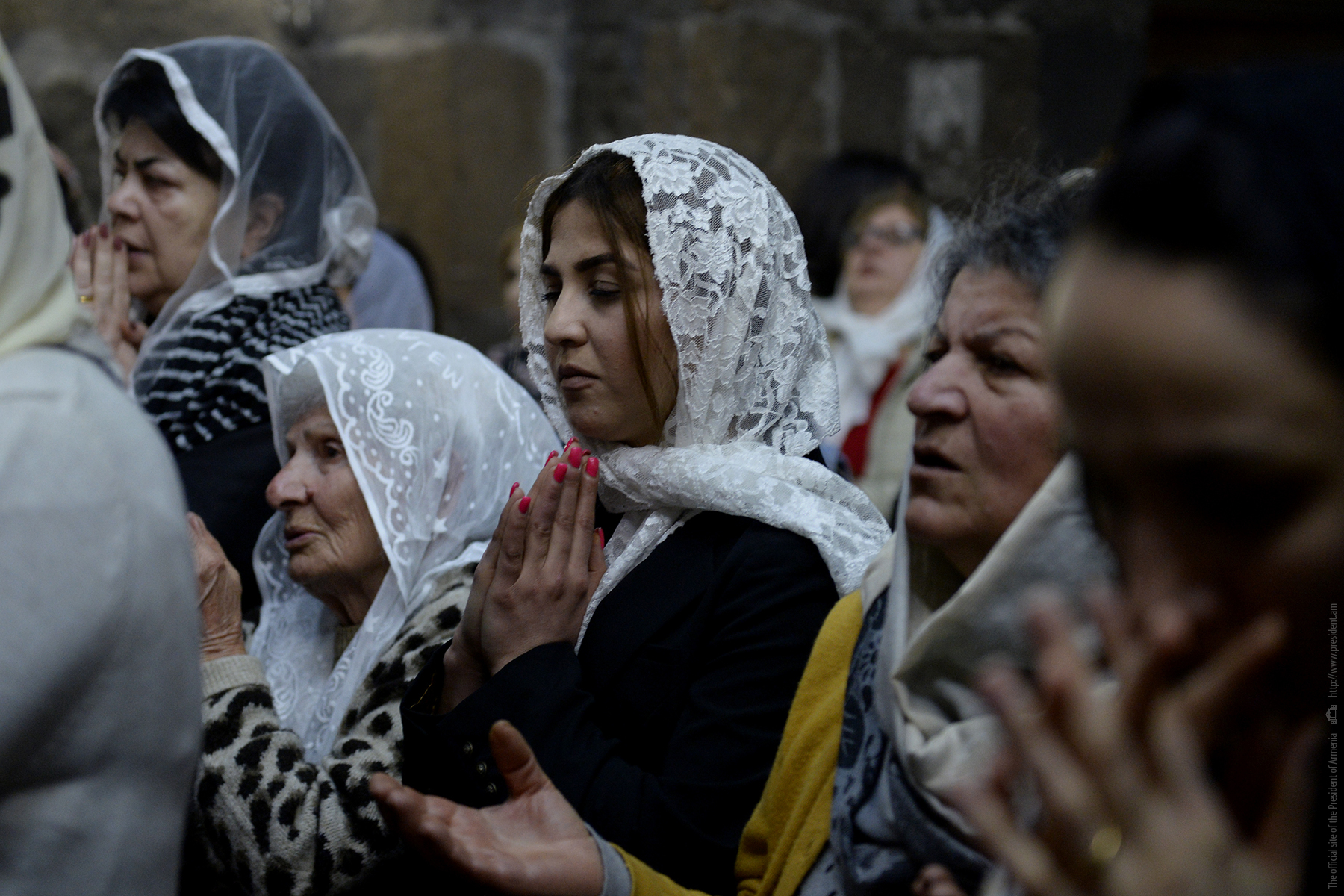 Հանրապետության նախագահ Վահագն Խաչատուրյանն այսօր երեկոյան Էջմիածնի Սուրբ Հռիփսիմե եկեղեցում ներկա է գտնվել Սուրբ Հարության տոնի ճրագալույցի պատարագին։