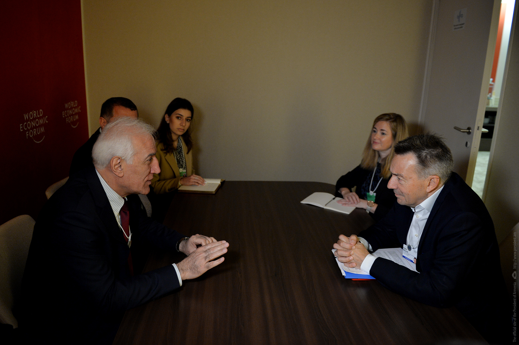 Հայաստանի Հանրապետության նախագահ Վահագն Խաչատուրյանը Դավոսում ընթացող Համաշխարհային տնտեսական համաժողովի շրջանակում հանդիպել է Կարմիր խաչի միջազգային կոմիտեի նախագահ Պետեր Մաուրերի հետ: