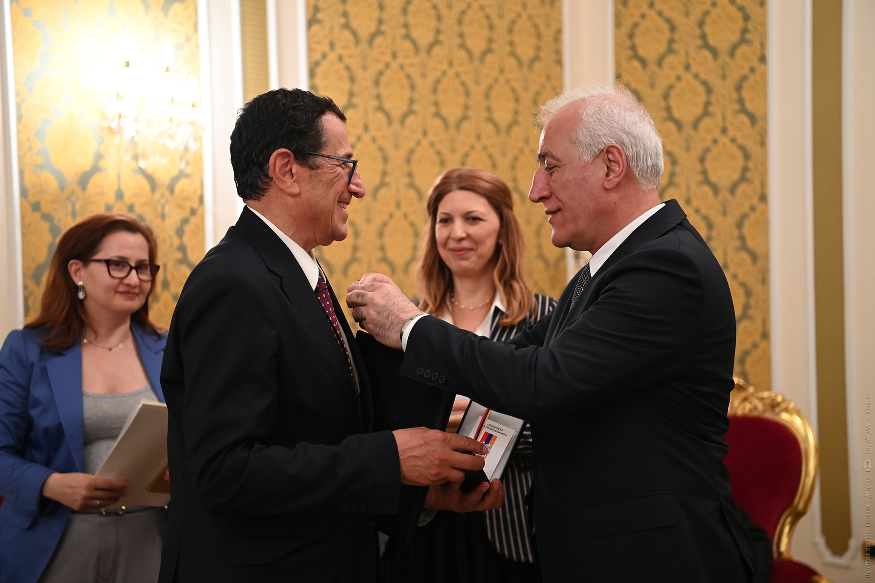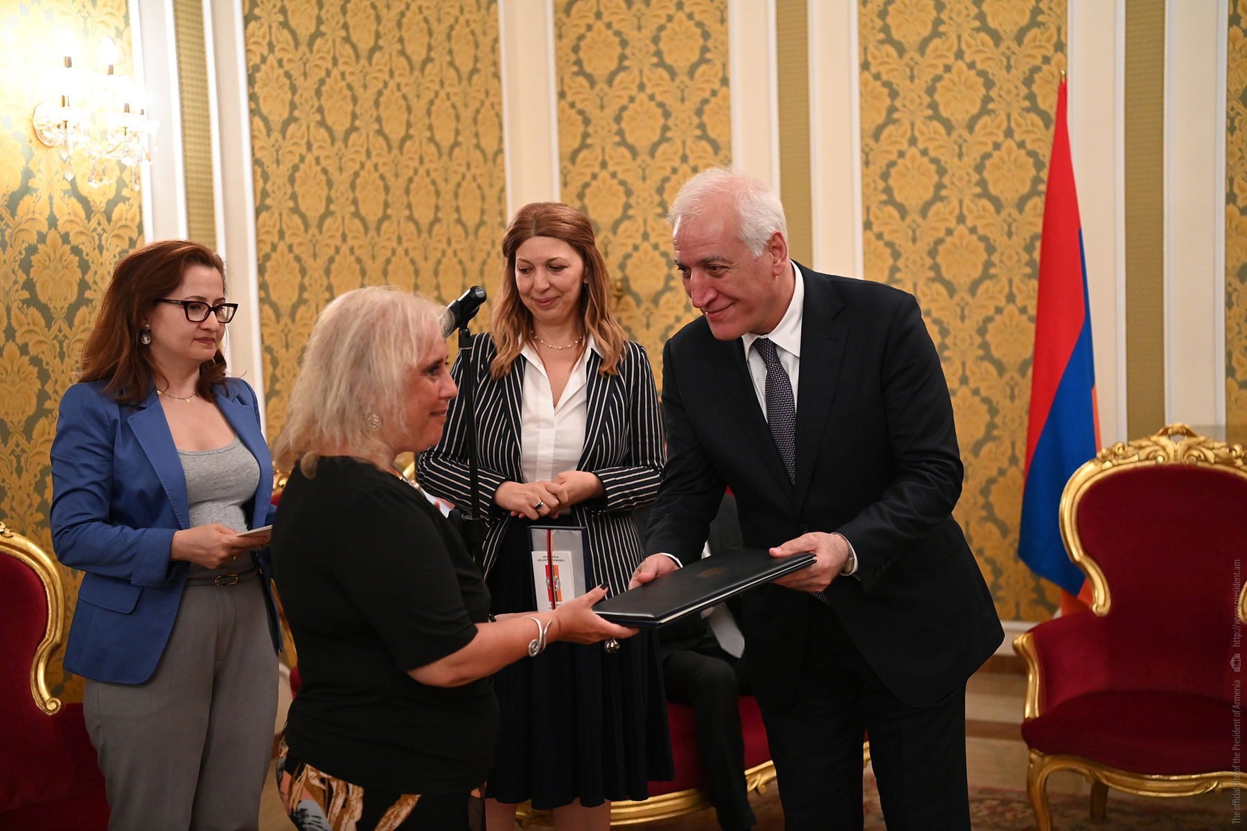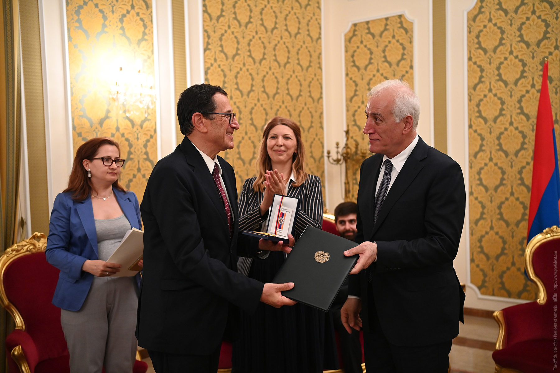 Համայնքի ներկայացուցիչների հետ հանդիպման շրջանակներում Հանրապետության նախագահը Երախտագիտության մեդալով է պարգևատրել Լետիցիա Լեոնարդիին և Թալալ Խրաիսին՝ Հայաստանին և հայ ժողովրդին մատուցած ծառայությունների համար:
