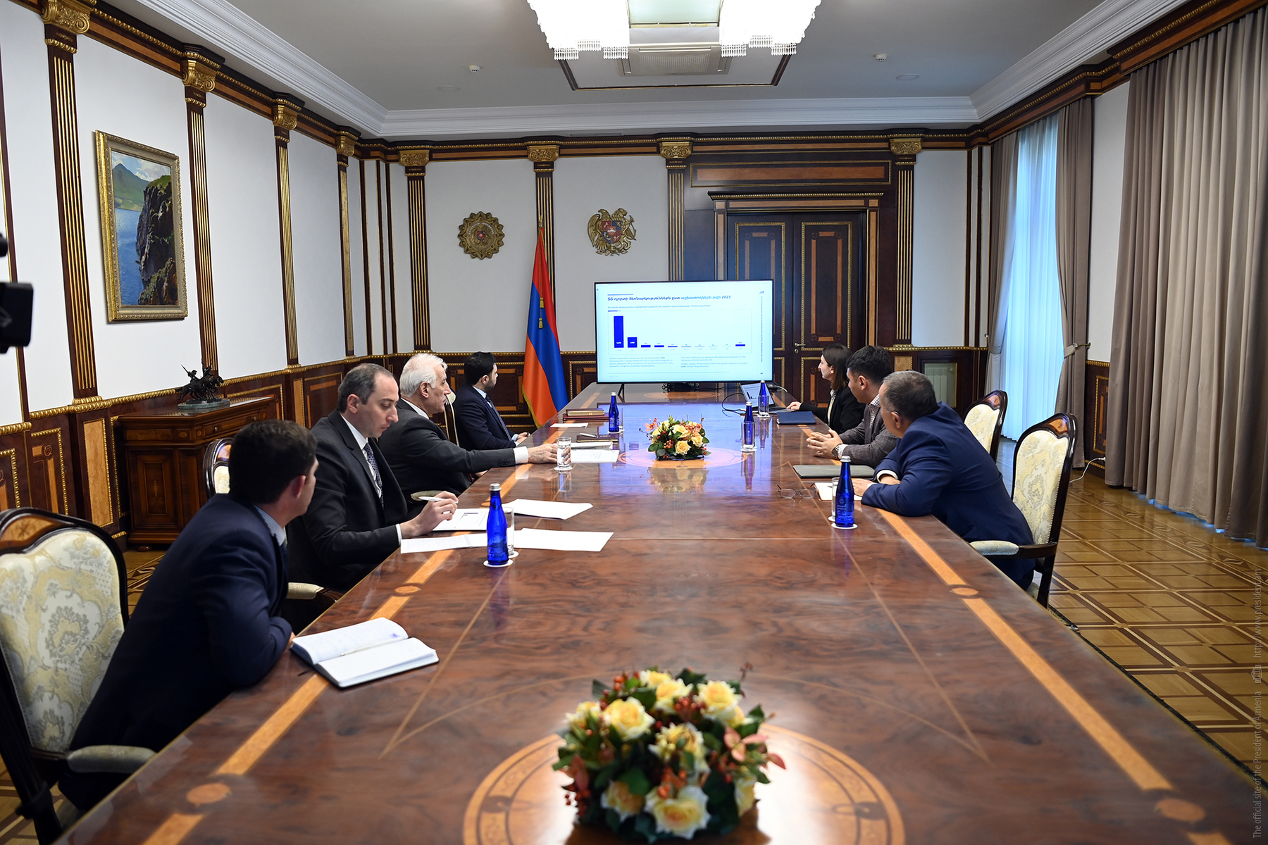 Հայկազ Ֆանյանն աշխատանքային կարգով Հանրապետության նախագահին է ներկայացրել Հայաստանի տնտեսության մեջ տեղեկատվական տեխնոլոգիաների և այլ ոլորտներում առկա դինամիկայի և հիմնական միտումների վերաբերյալ կենտրոնի կողմից իրականացված հետազոտությունների և ուսումնասիրությունների արդյունքները: