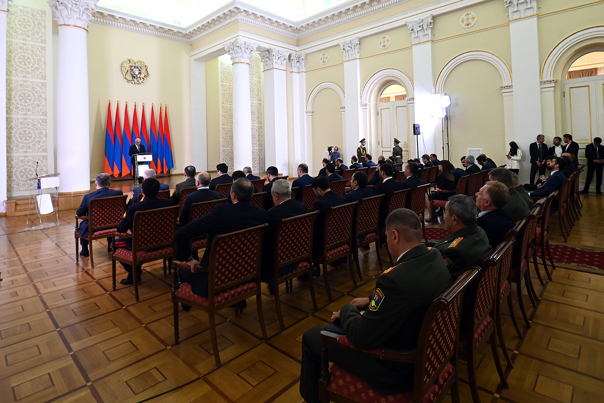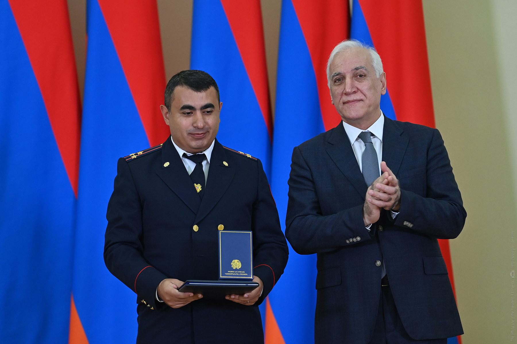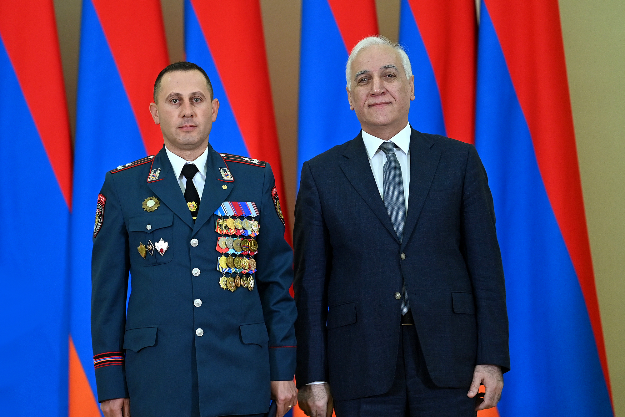 Նախագահ Խաչատուրյանը նախ շնորհավորել է բոլորին Հանրապետության օրվա կապակցությամբ և, հանձնելով բարձր պարգևները, շնորհակալություն հայտնել ցուցաբերած խիզախության և նվիրումի համար:
