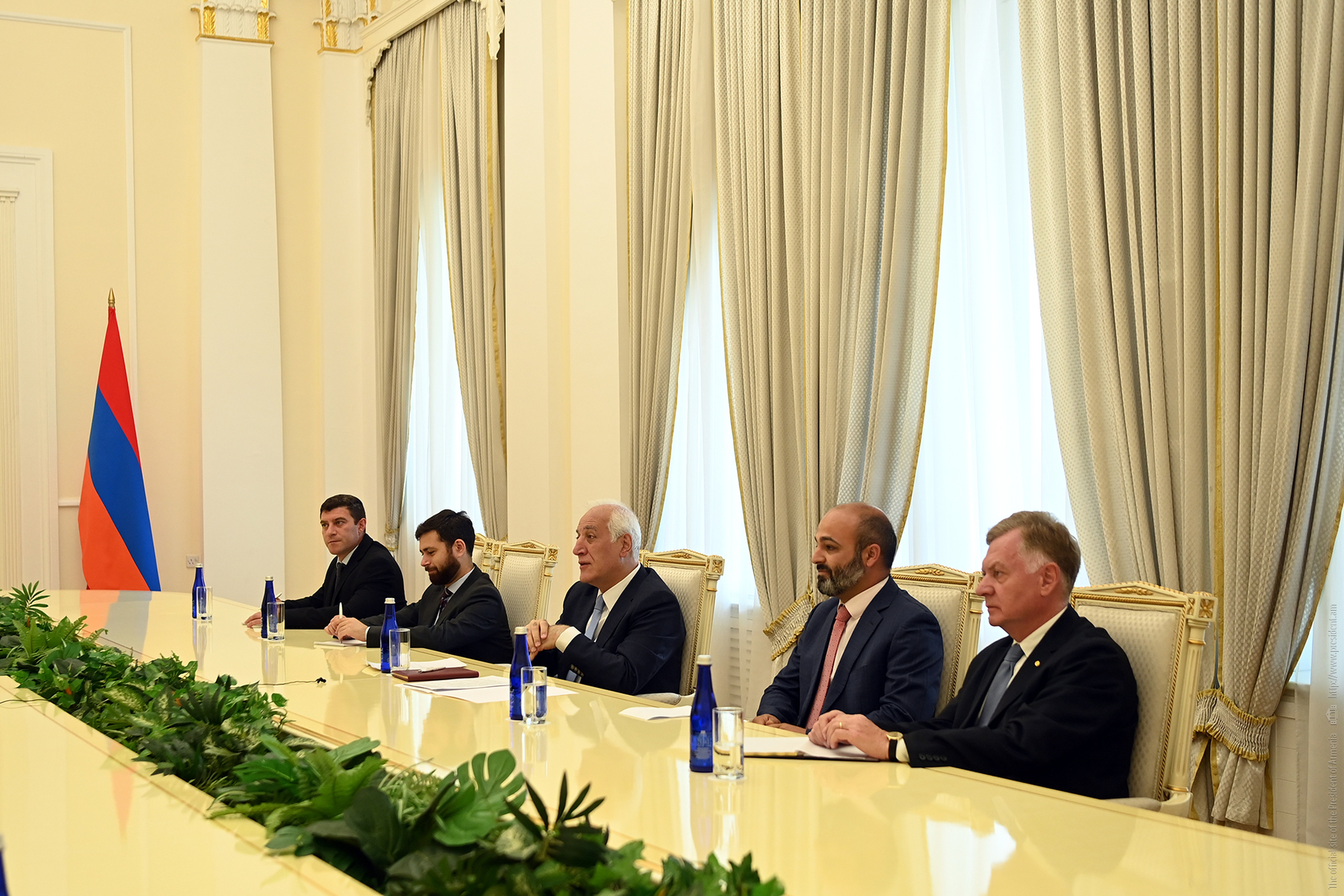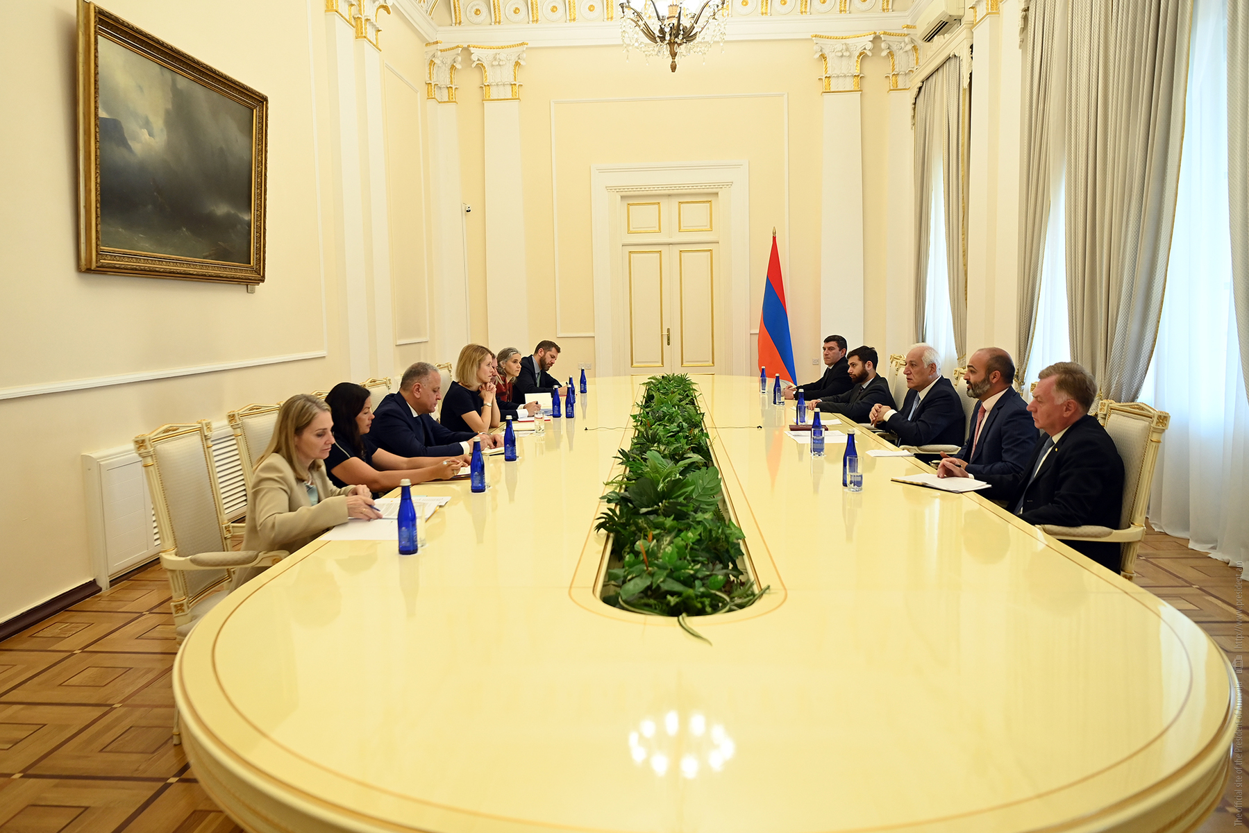 Հանդիպման ընթացքում կողմերը քննարկել են Հայաստան-Եվրոպական միություն բազմաշերտ համագործակցության հարցերի լայն շրջանակ։ Նախագահ Խաչատուրյանը ներկայացրել է Հայաստանի արտաքին քաղաքականության առաջնահերթություններն ու հիմնարար դիրքորոշումները՝ ընդգծելով, որ Հայաստանը հաստատակամորեն հետևում է տարածաշրջանում խաղաղության հաստատման և բոլոր հարևան երկրների հետ բարիդրացիական հարաբերությունների կառուցման ուղուն։