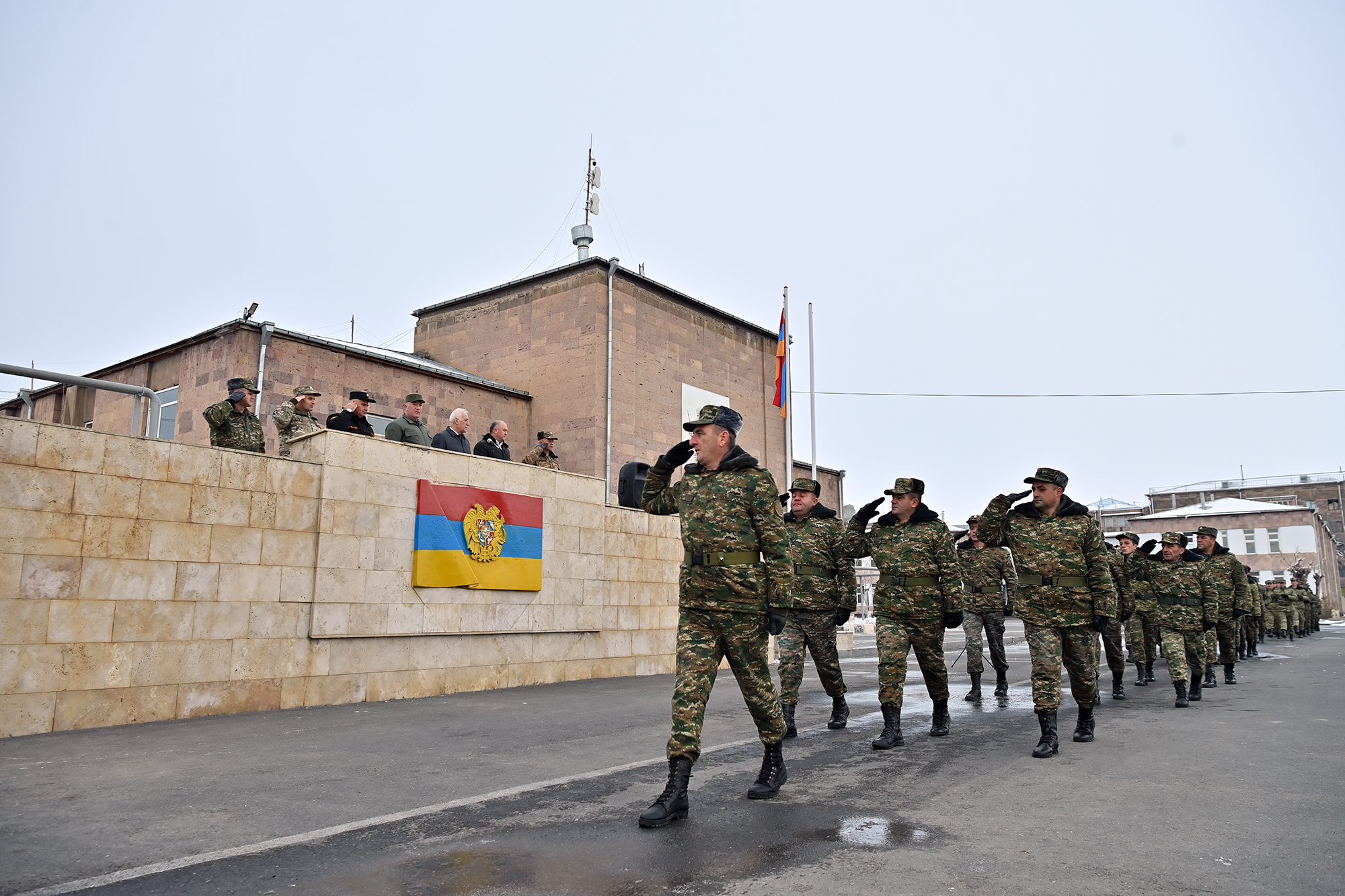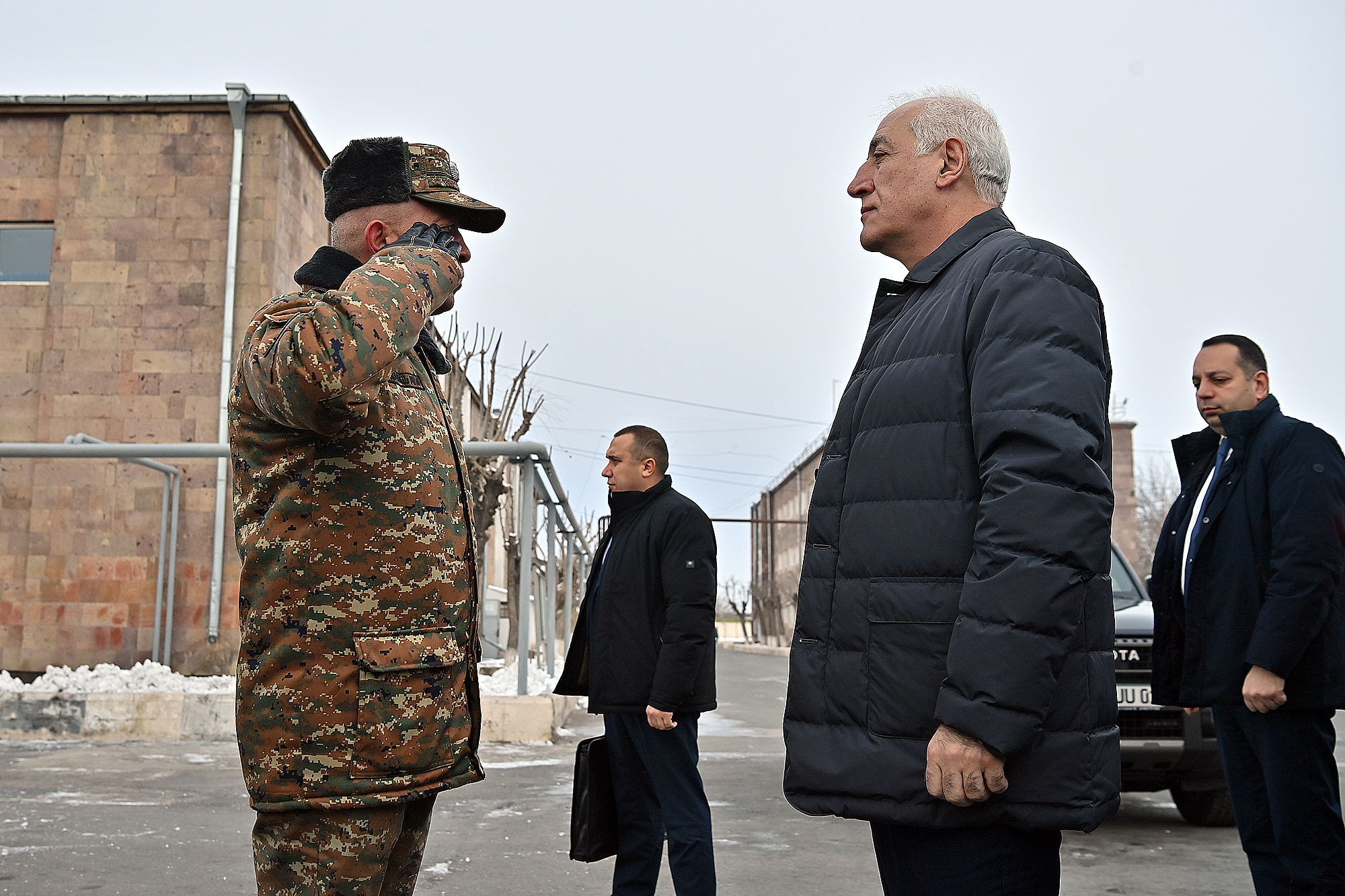 Ողջունելով զորամասի անձնակազմին նախագահ Խաչատուրյանը շնորհակալություն է հայտնել բարեխիղճ և օրինակելի ծառայության համար և շնորհավորել գալիք տոների կապակցությամբ: