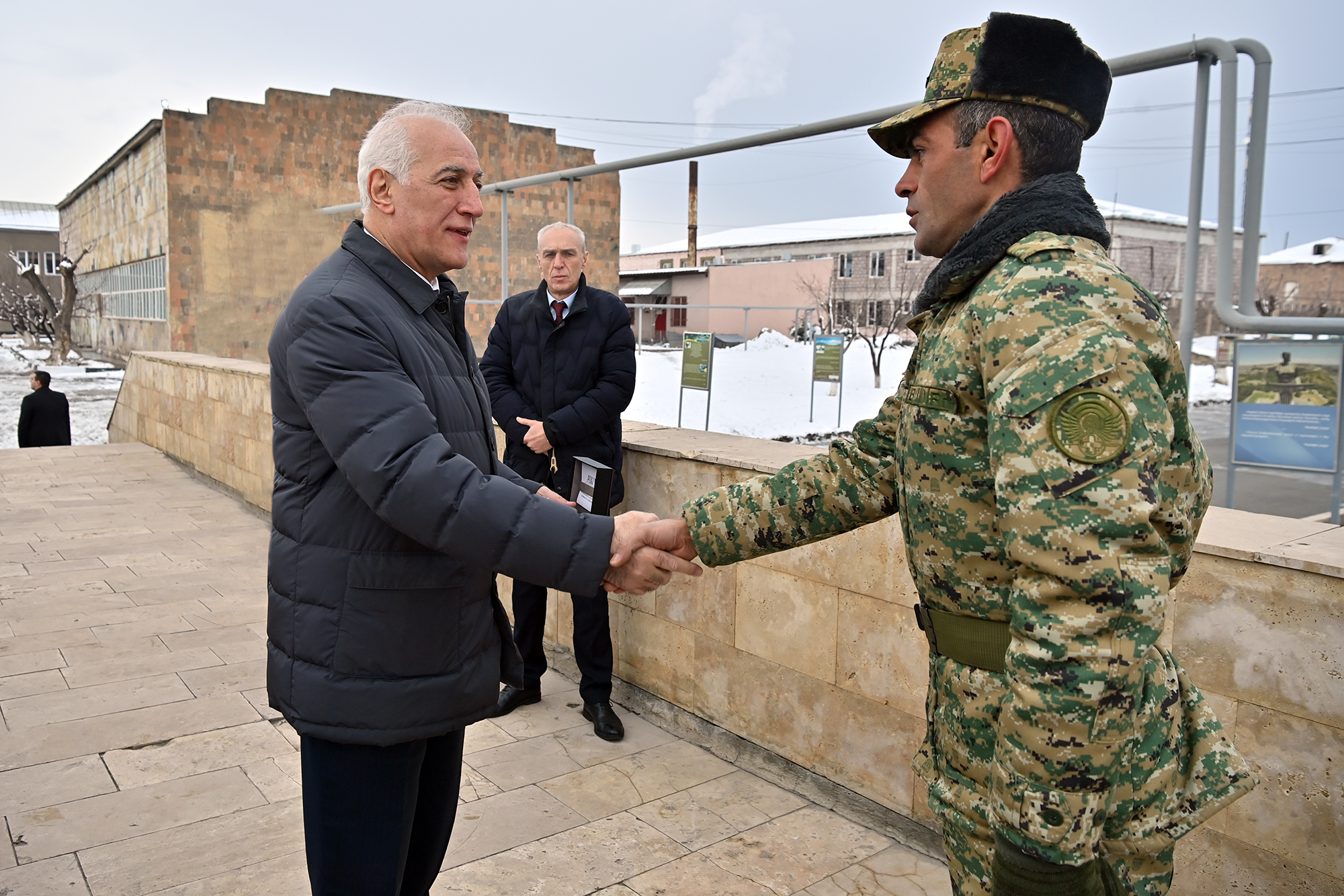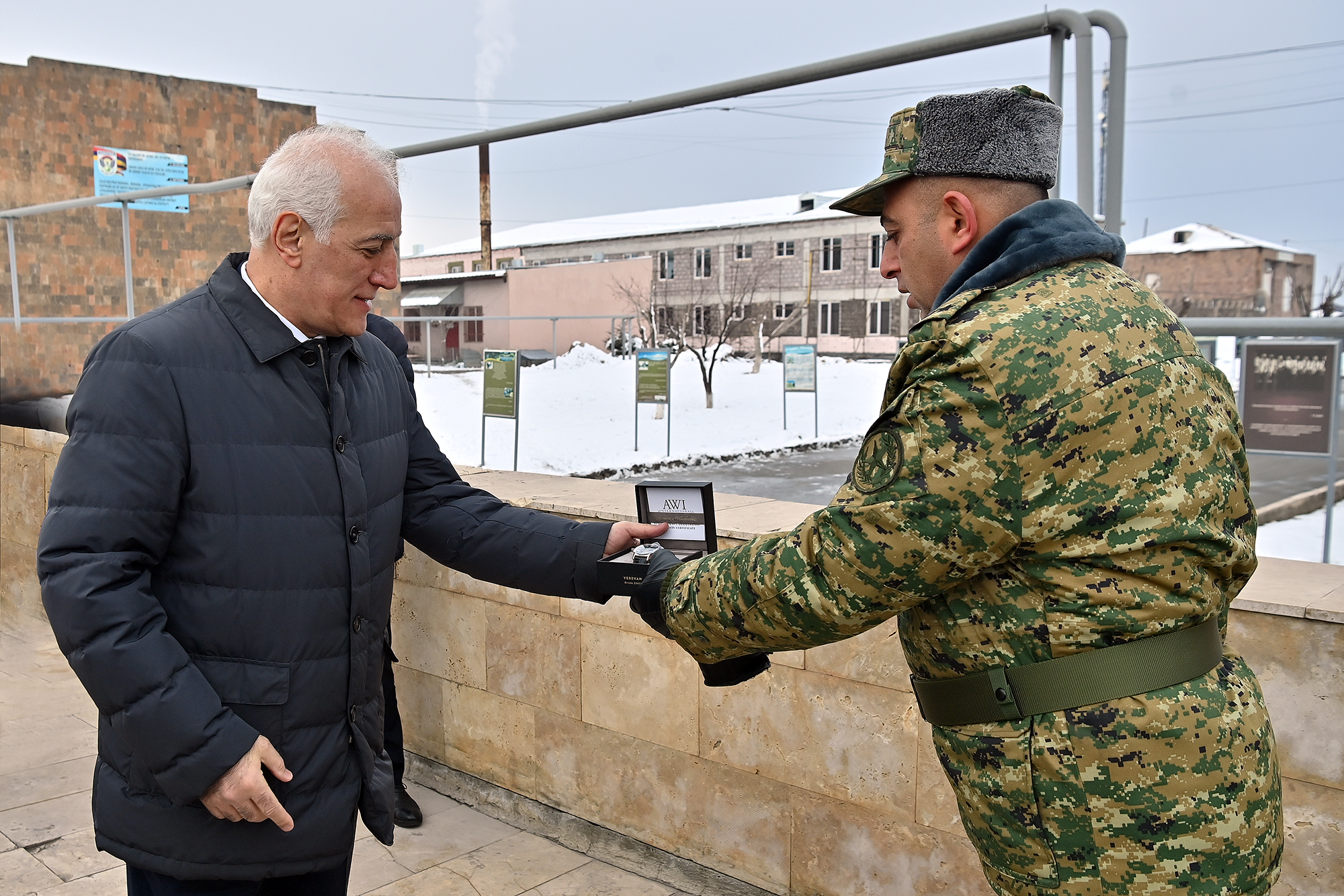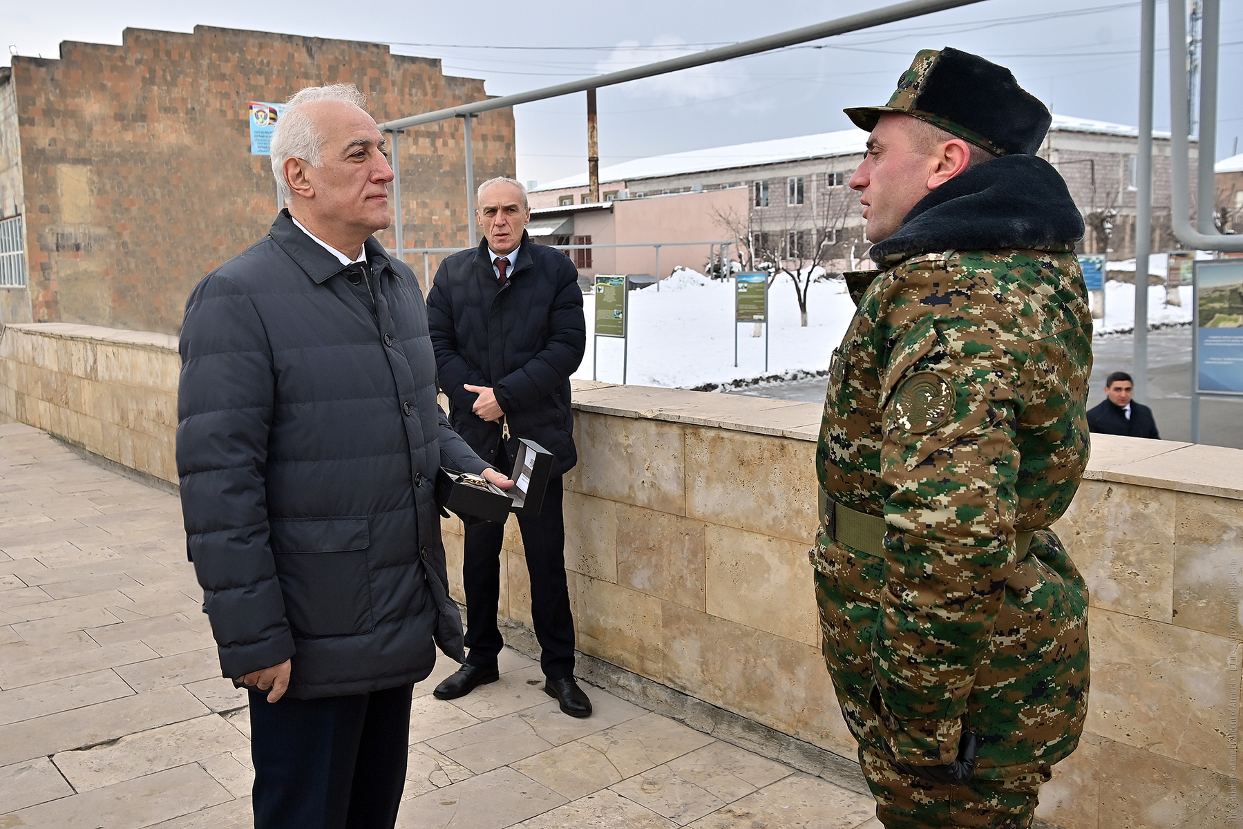 Ամանորյա տոներին ընդառաջ Հանրապետության նախագահ Վահագն Խաչատուրյանն այցելել է հայաստանյան սահմանային զորամասերից մեկը և խրախուսական նվերներ հանձնել հրամանատարական կազմի ներկայացուցիչներին և ժամկետային զինծառայողներին:
