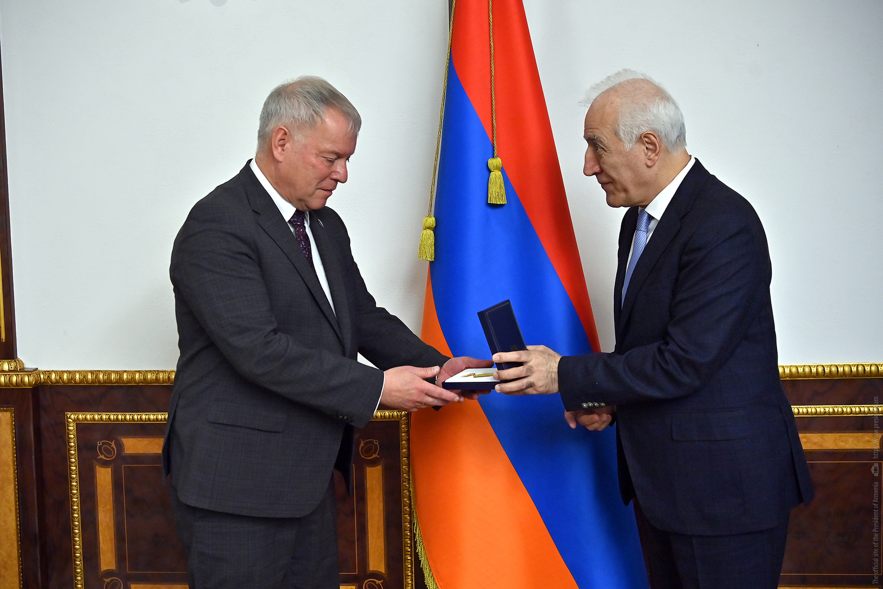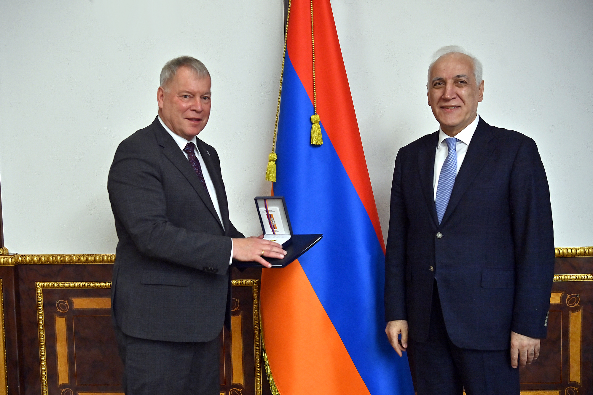 Հանդիպման ավարտին Հանրապետության նախագահ Վահագն Խաչատուրյանը Մարկուս Ռիտերին պարգևատրել է Երախտագիտության մեդալով։
