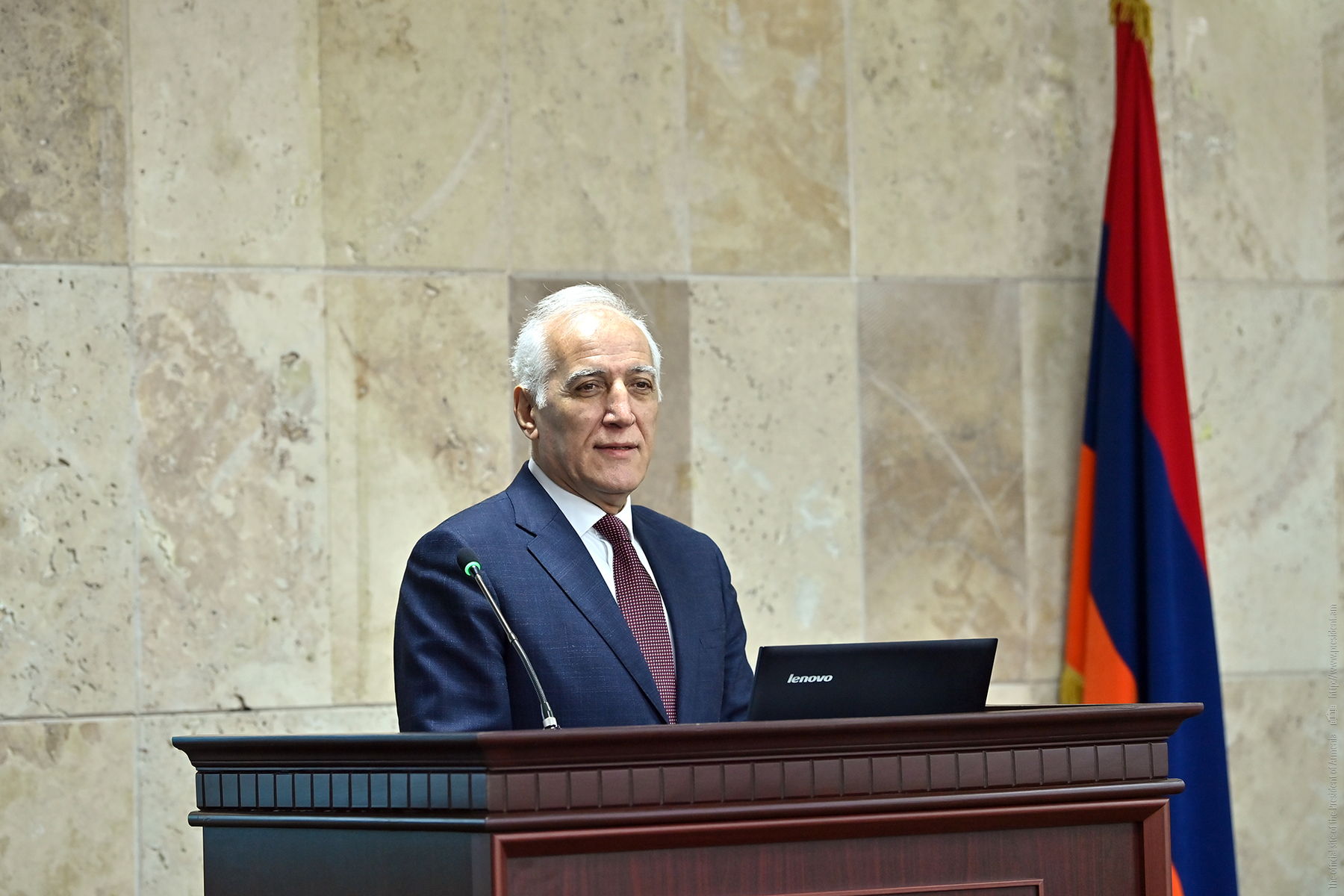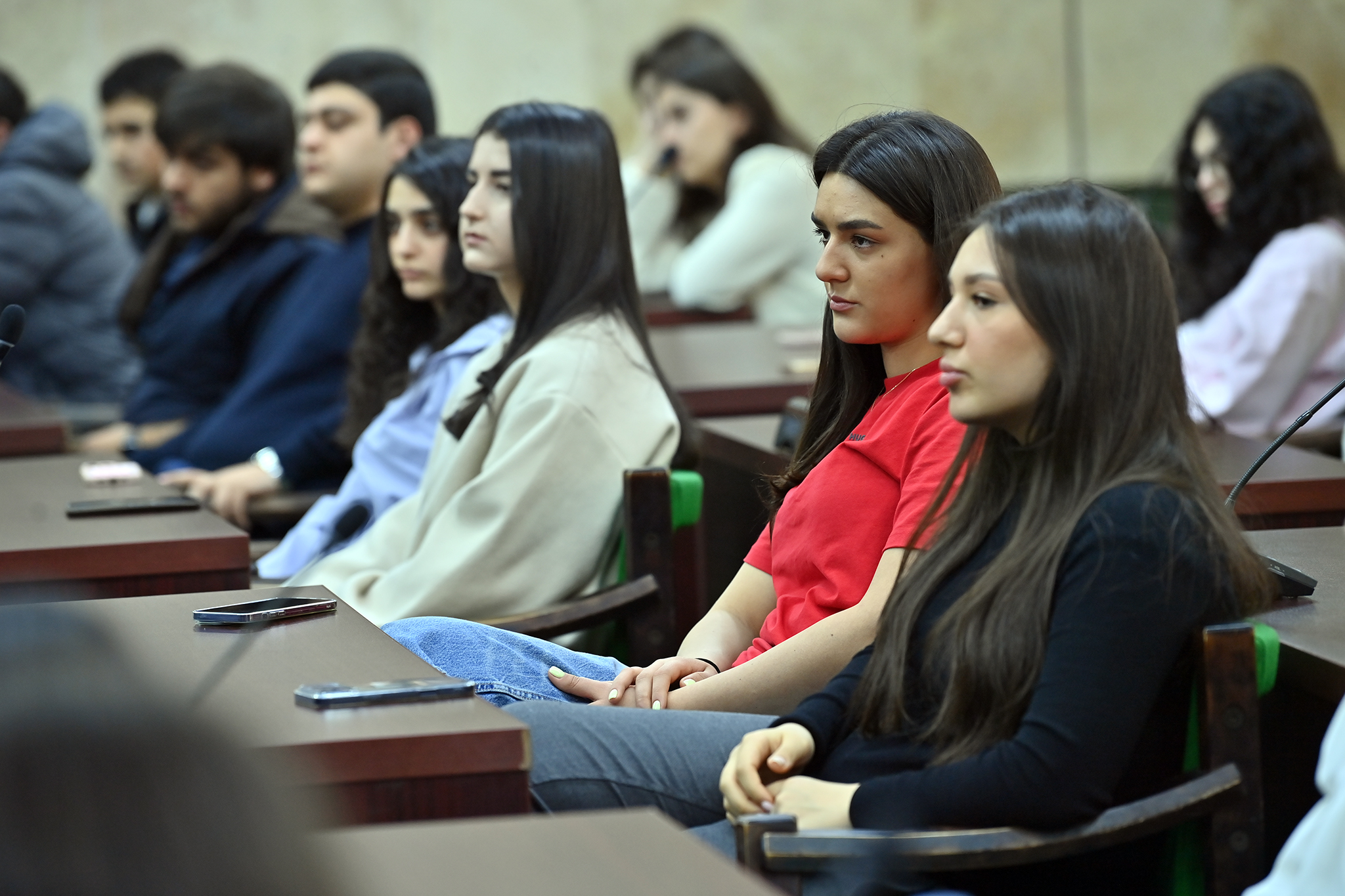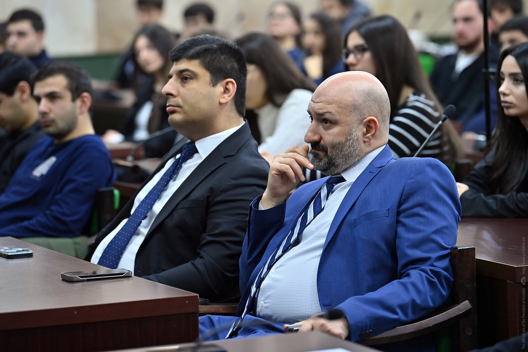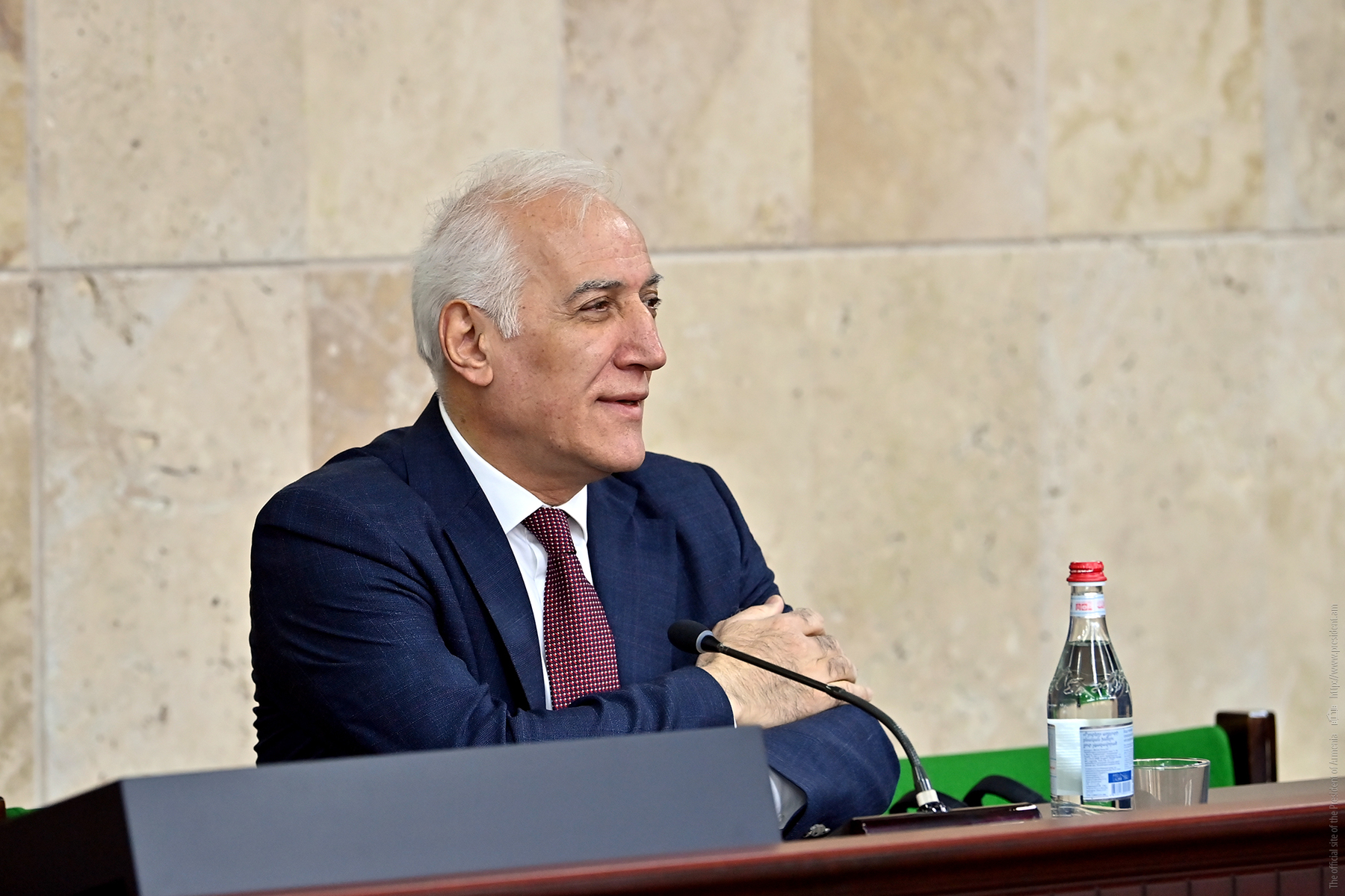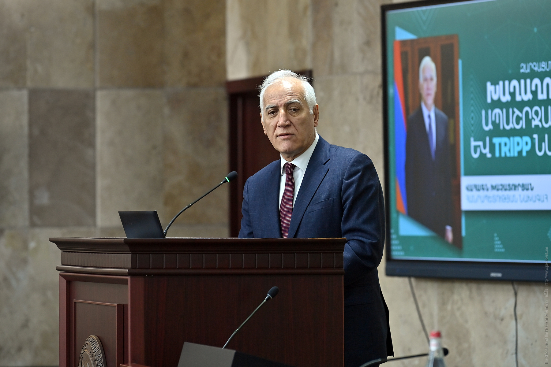 Հանրապետության նախագահ Վահագն Խաչատուրյանն այցելել է Երևանի պետական համալսարան, որտեղ հանդիպել է ուսանողների հետ և հանդես եկել բանախոսությամբ՝ «Զարգացման հեռանկարներ, խաղաղություն, ապաշրջափակում և «TRIPP» նախագիծ» խորագրով։