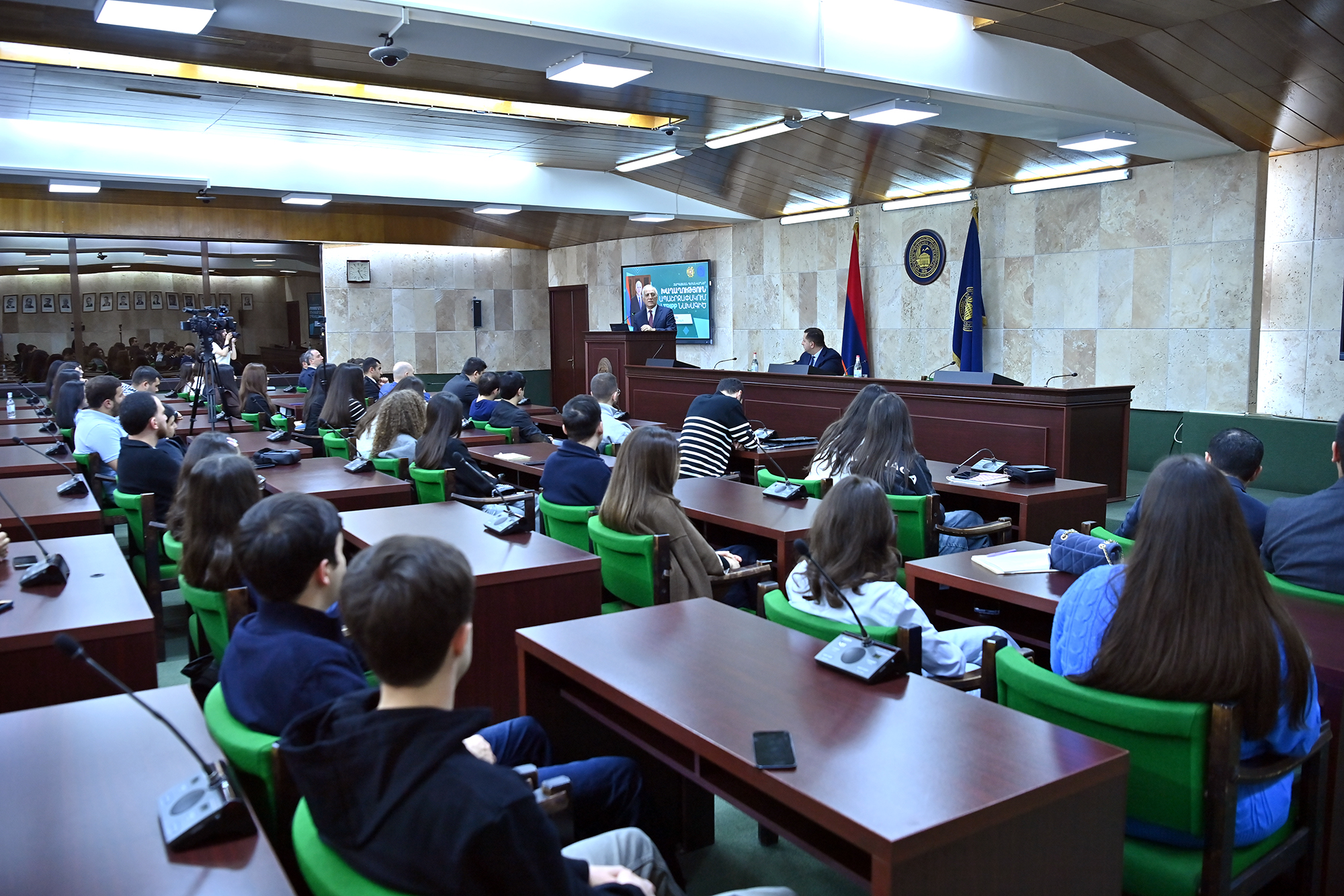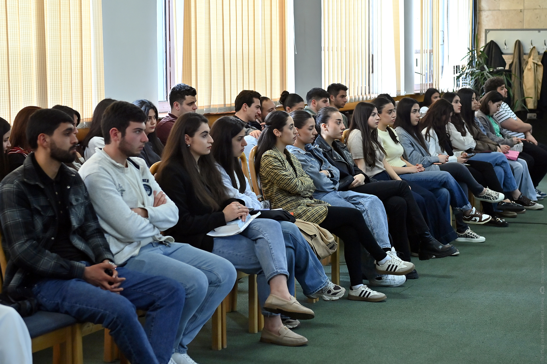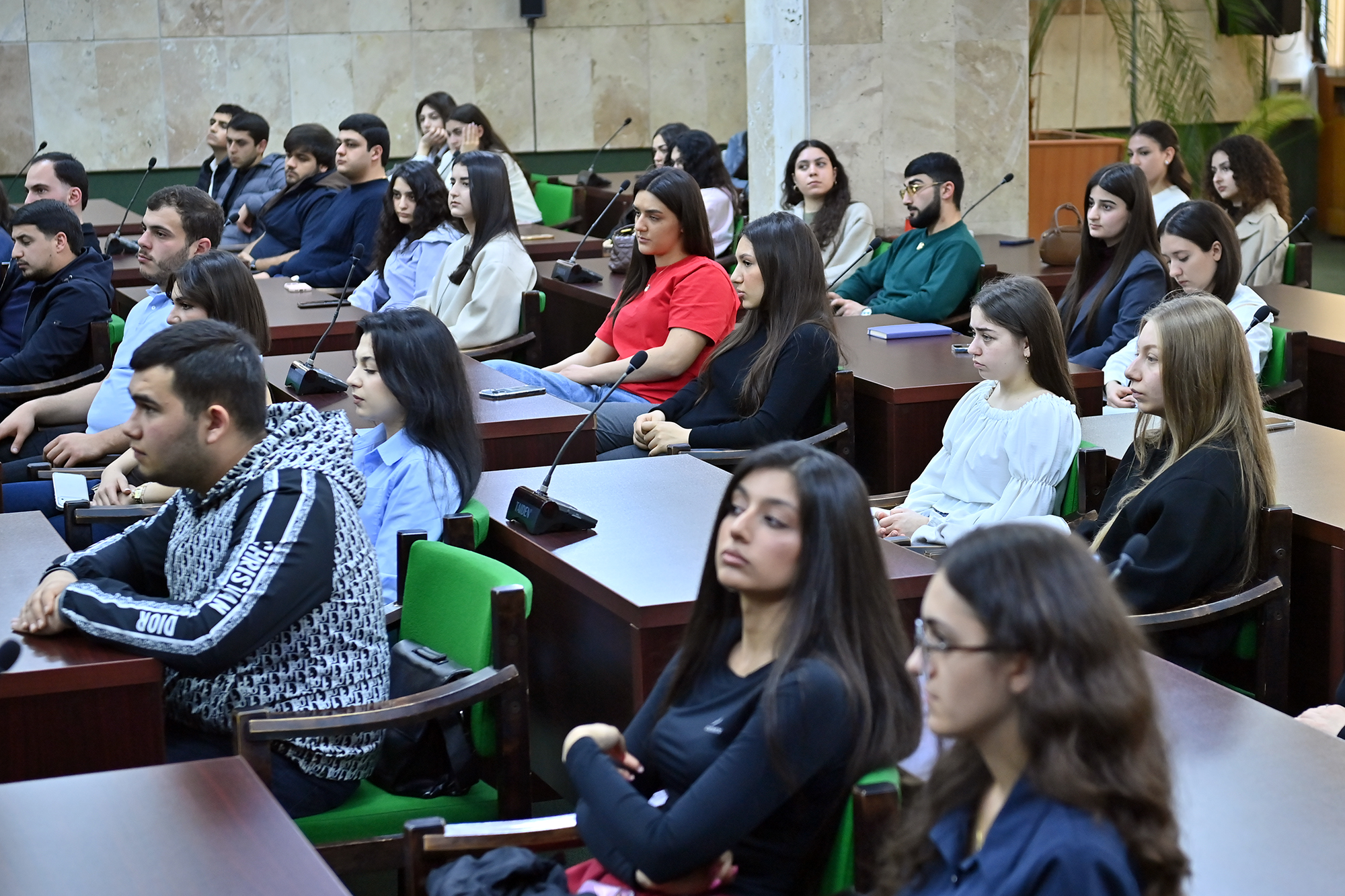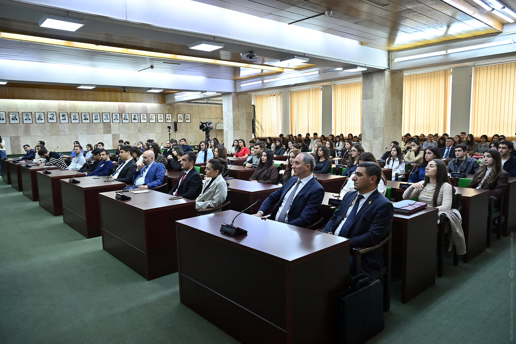 Հանրապետության նախագահ Վահագն Խաչատուրյանն այցելել է Երևանի պետական համալսարան, որտեղ հանդիպել է ուսանողների հետ և հանդես եկել բանախոսությամբ՝ «Զարգացման հեռանկարներ, խաղաղություն, ապաշրջափակում և «TRIPP» նախագիծ» խորագրով։