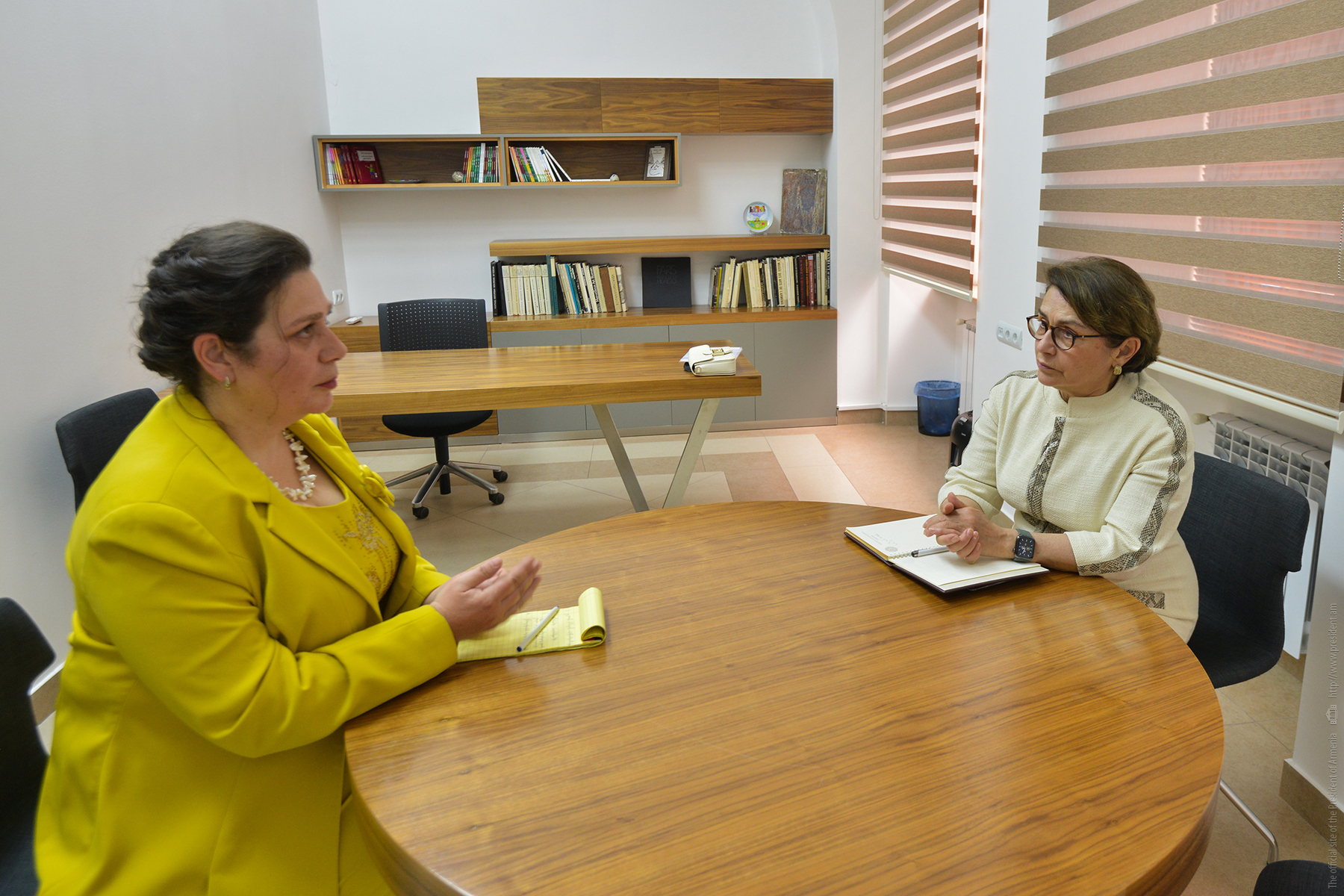 Супруга Президента Республики Нунэ Саркисян в фонде «Ереван – моя любовь» приняла Председателя культурно-образовательной общественной организации «Возрождение традиционных праздников», Художественного руководителя народного театра «Тонацуйц» (Календарь праздников – арм.), музыковеда Асмик Баграмян.
