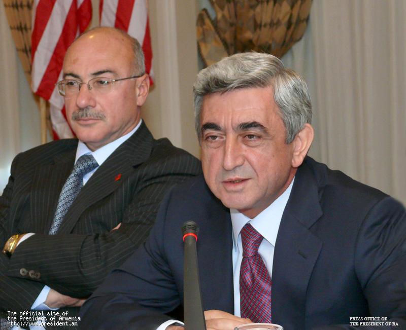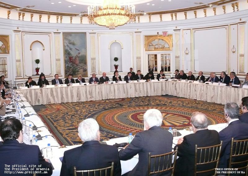 Вторым пунктом панармянского турне стал Нью-Йорк. Здесь Президент Серж Саргсян 3 октября провел встречу с представителями армянских общин Восточного побережья США и Канады. Во встрече приняли участие также заместитель председателя Совета попечителей Всеармянского фонда "Айастан" Гагик Арутюнян, посол Президента РА по особым поручениям, бывший Президент НКР Аркадий Гукасян, министр Диаспоры Грануш Акопян.