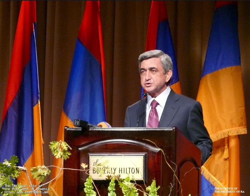 По завершении встречи в зале отеля "Хилтон" в честь визита Президента Республики Армения со стороны Всеобщего армянского благотворительного союза был дан ужин, в котором приняли участие более 500 представителей армянских общин Западного побережья США и стран Латинской Америки. В начале ужина в зал были внесены флаги Республики Армения, Соединенных Штатов Америки и штата Калифорния, прозвучали гимны двух государств.