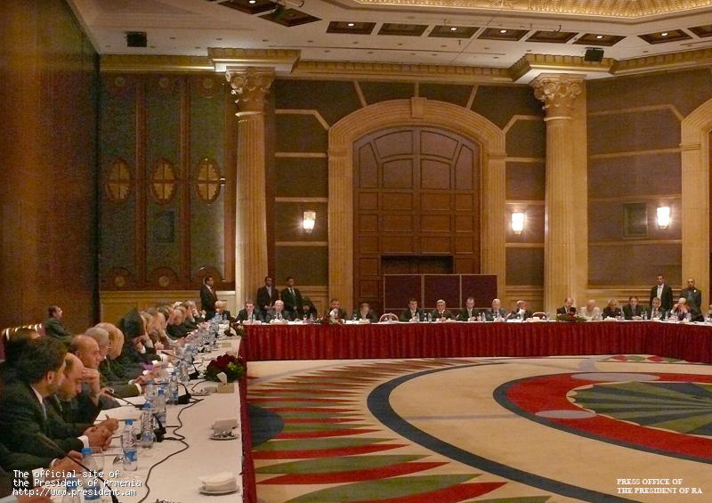 Отметив, что, сама по себе, встреча в подобном формате - новое явление, и этот формат позволяет выслушать мнения и подходы разных частей нашего рассеянного по миру народа относительно обсуждаемых тем общенационального значения, Президент Серж Саргсян сказал: "Этот зал представляет собой единую силу, исполнен могучего завета сотен тысяч европейских армян, и я констатирую это с нескрываемой гордостью. Эта сила на протяжении десятилетий решала многие общеармянские задачи, всегда была и остается рядом с Арменией. И останется, ибо на протяжении веков Армения была гаванью устремлений армянства. И сегодня мы вместе, на этот раз для того, чтобы посоветоваться в вопросе принятия решений, перед важной дорогой провести распределение работы".