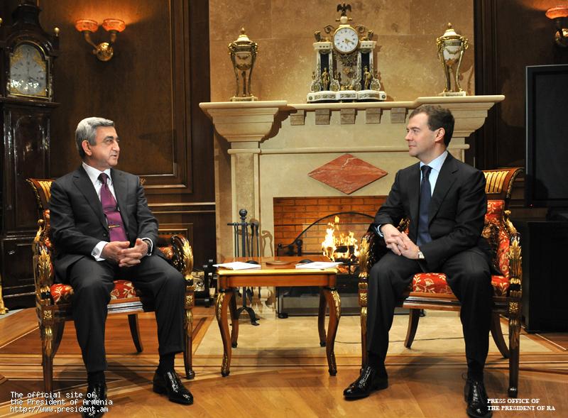 Президент РА Серж Саргсян выразил благодарность за приглашение. Президент отметил, что в 2010 году это его первый зарубежный визит, и высказал радость по поводу того, что это государство – Российская Федерация. По словам Сержа Саргсяна, сейчас очень подходящее время, чтобы подвести итоги работы по укреплению армяно-российских взаимоотношений в 2009 году и наметить новое на 2010 год.