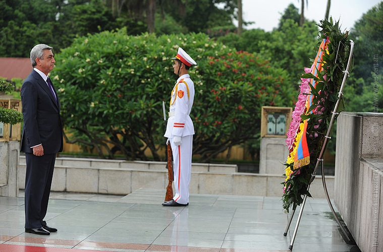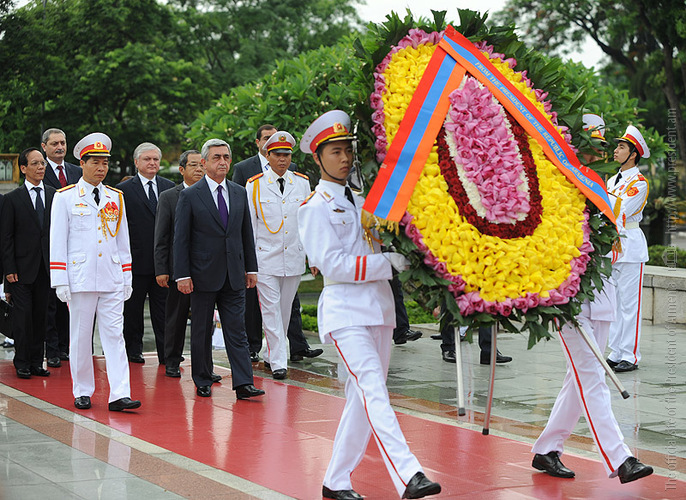 Находящийся с официальным визитом во Вьетнамской Социалистической Республике Президент Серж Саргсян сегодня утром посетил памятник Погибшим героям и мавзолей Хо Ши Мина, возложил венки и воздал дань уважения.