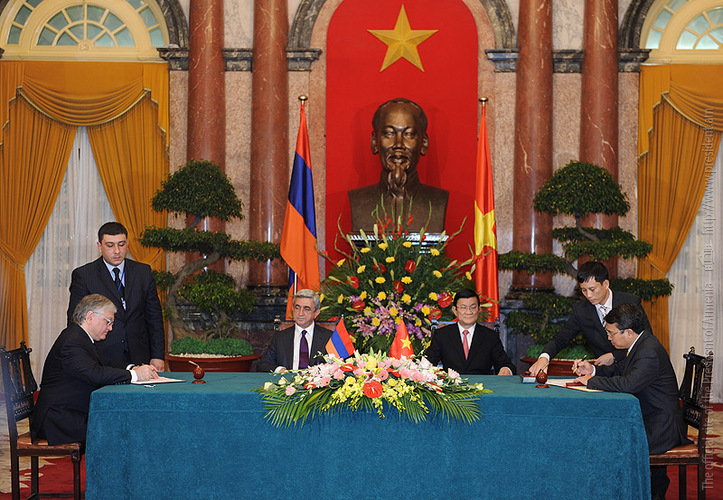 Президенты Серж Саргсян и Чыонг Тан Шанг подчеркнули, что Вьетнам и Армения имеют традиционные тесные дружеские связи и динамично развивающийся политический диалог, успешно сотрудничают в рамках международных организаций, однако уровень экономических отношений всё еще не соответствует уровню армяно-вьетнамских политических отношений и существующему потенциалу.