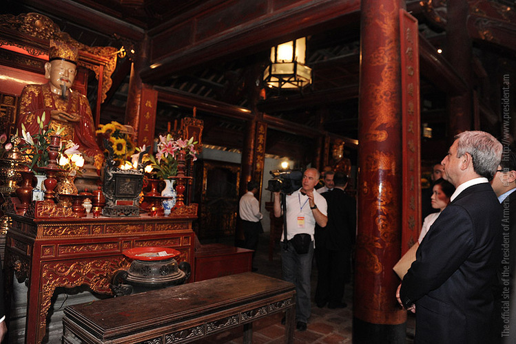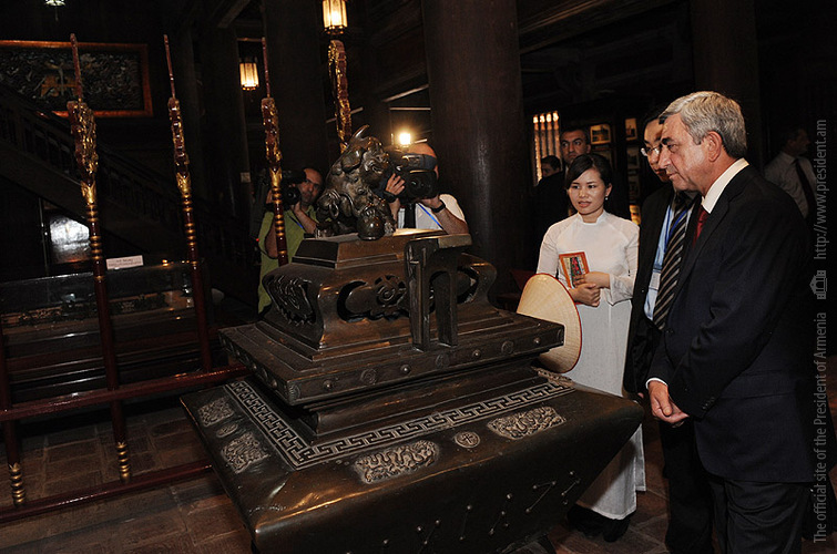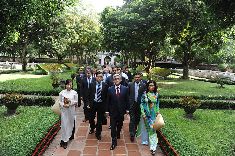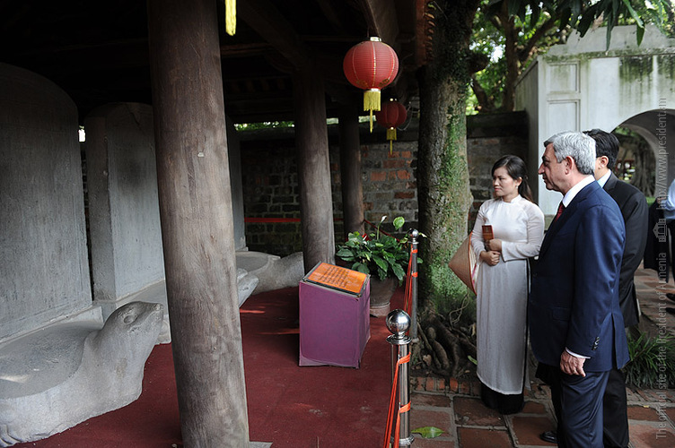 Президент в Ханое посетил также Храм Литературы. «Этот тысячелетний храм образования свидетельствует о любви и преклонении, которые вьетнамский народ испытывает по отношению к знаниям», - написал Президент Серж Саргсян в Книге почетных гостей после экскурсии по Храму Литературы.