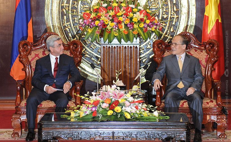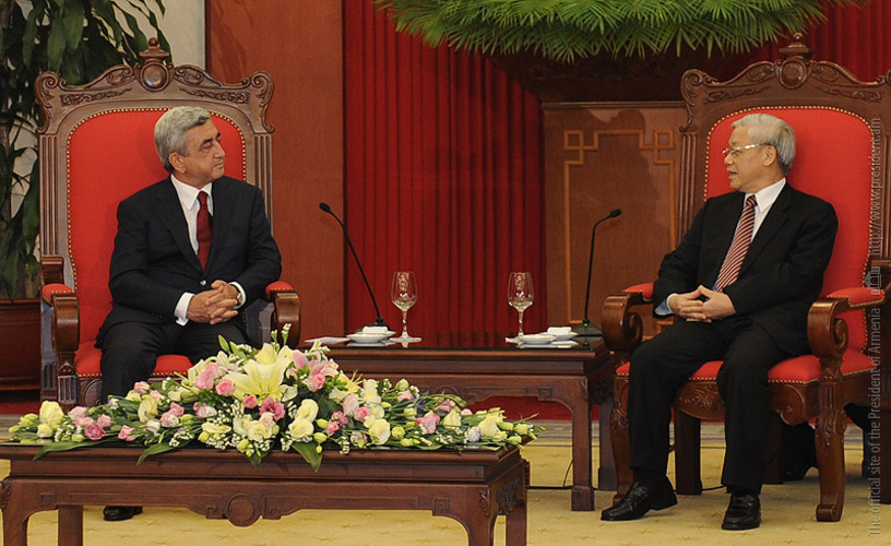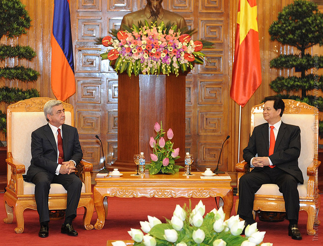 Президент Серж Саргсян сегодня в рамках официального визита во Вьетнам встретился с премьер-министром Нгуеном Тан Зунгом, Генеральным секретарем Коммунистической партии Нгуеном Фу Чонгом и председателем Национального Собрания Нгуеном Синь Хунгом.