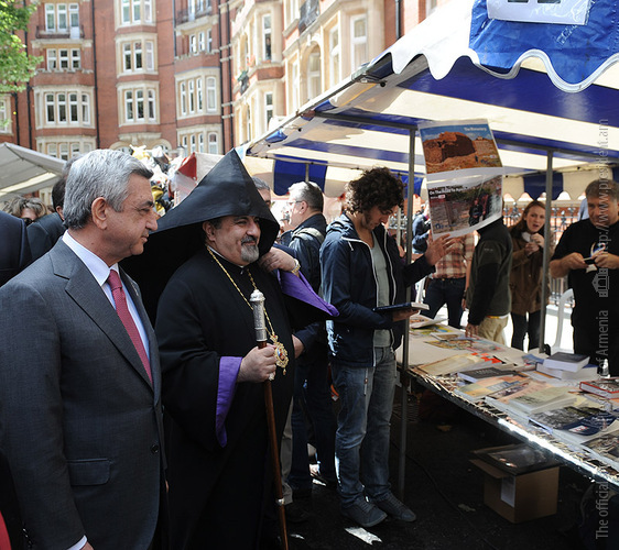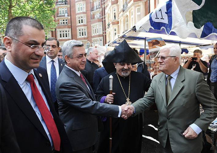 Сегодня в столице Соединенного Королевства Президента республики принимали на армянском фестивале под открытым небом, организованном епархией Армянской Апостольской Церкви в Соединенном Королевстве и Ирландии, в честь армянских спортсменов, прибывших в Лондон для участия в Играх.