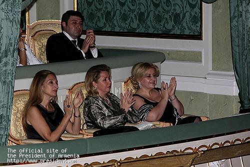 Первая леди Рита Саргсян, Первая леди Российской Федерации Светлана Медведева и супруга посла РА в РФ Елена Смбатян в Большом театре смотрели постановку балета А. Адана "Жизель".