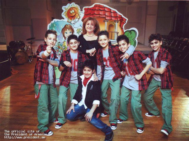 Первая леди РА Рита Саргсян встретилась с занявшим первое место на конкурсе «Детское Евровидение 2010» Владимиром Арзуманяном и участниками выступавшей с ним танцевальной группы.