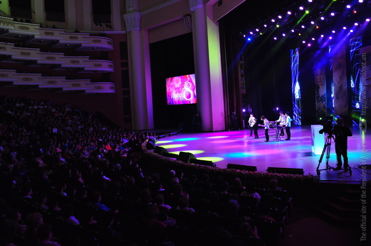 Первая леди Армении Рита Саргсян по случаю Женского праздника 8-го марта в Национальном академическом театре оперы и балета имени А.Спендиаряна присутствовала на праздничном концерте, на который были приглашены также и многочисленные женщины самых различных профессий, в том числе представители государственного, общественного сектора, политические деятели и деятели культуры.