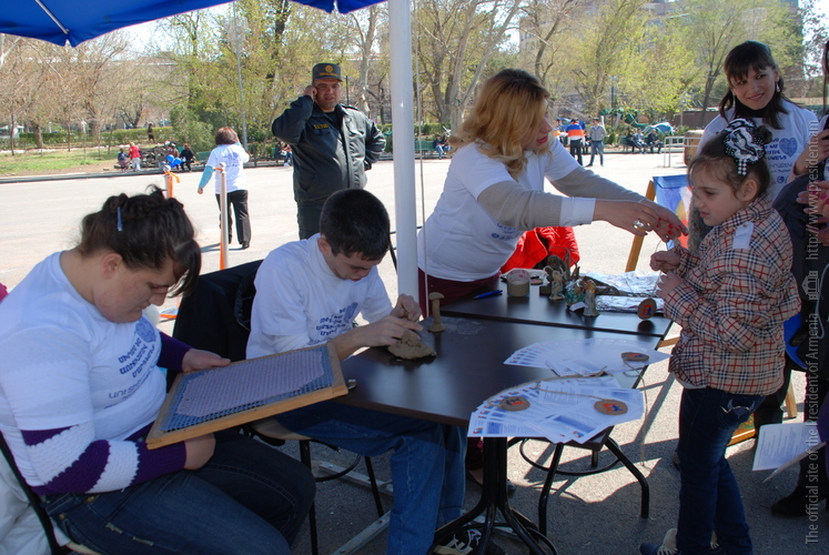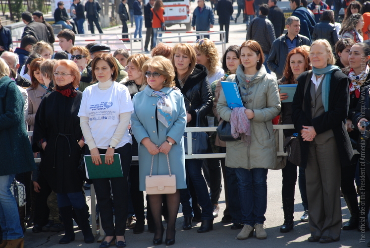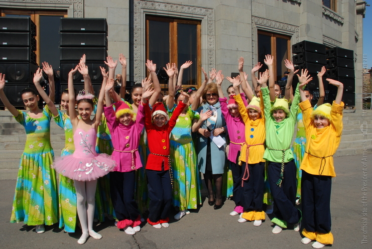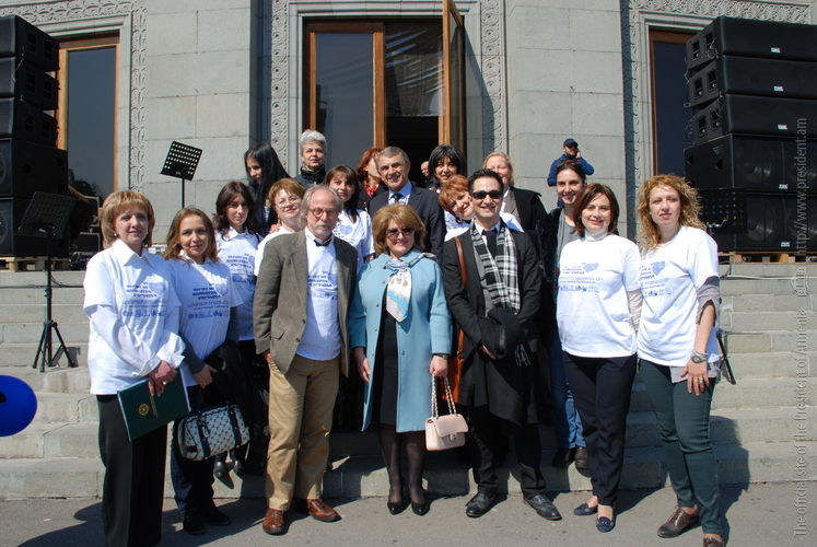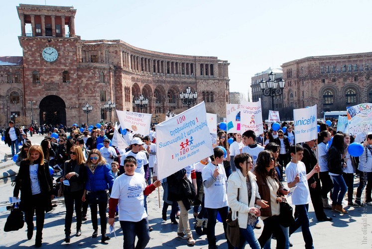 Первая леди Армении Рита Саргсян сегодня приняла участие в шествии, посвященном Всемирному дню распространения информации об аутизме, которое было организовано действующим по инициативе Первой леди национальным фондом «Аутизм» при содействии мэрии Еревана. Шествие стартовало с прилегающей к мэрии Еревана территории и завершилось на площади Свободы. В ряду организованных в рамках шествия мероприятий на площади Свободы состоялась презентация посвященной имеющим аутизм детям песни «Божьи ангелы», автором музыки которой является Рита Саргсян. В рамках мероприятий под открытым небом была также представлена выставка картин воспитанников Международного центра развития детей. По примеру ряда стран мира в этом году в Армении впервые была также проведена инициатива «Зажжем синий свет», в рамках которой здание Национального академического театра имени А.Спендиаряна было освещено синим светом. Целью инициативы является привлечение синим светом внимания общества к проблемам аутизма.