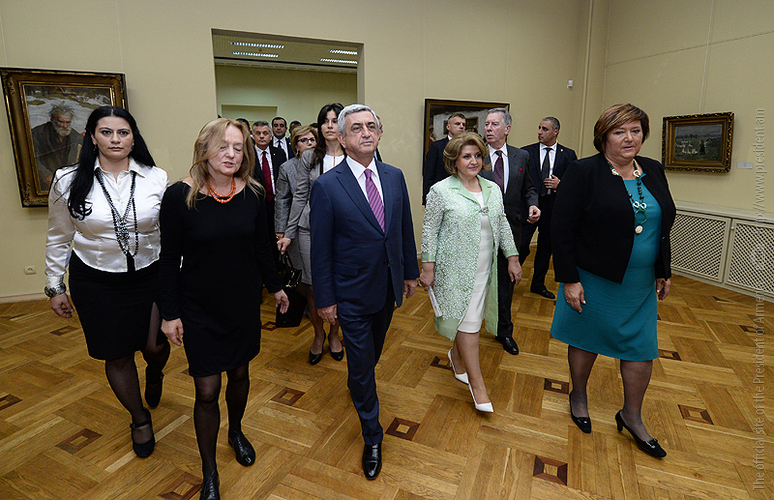 Первая леди Армении Рита Саргсян и Первая леди Польши Анна Коморовская присутствовали на открытии выставки работ художника Теодора Аксентовича
