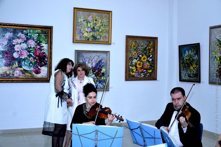 Первая леди Армении Рита Саргсян 2 марта в Союзе художников Армении присутствовала на организованной по случаю весны выставке картин Лилии и Светы Карчикян.