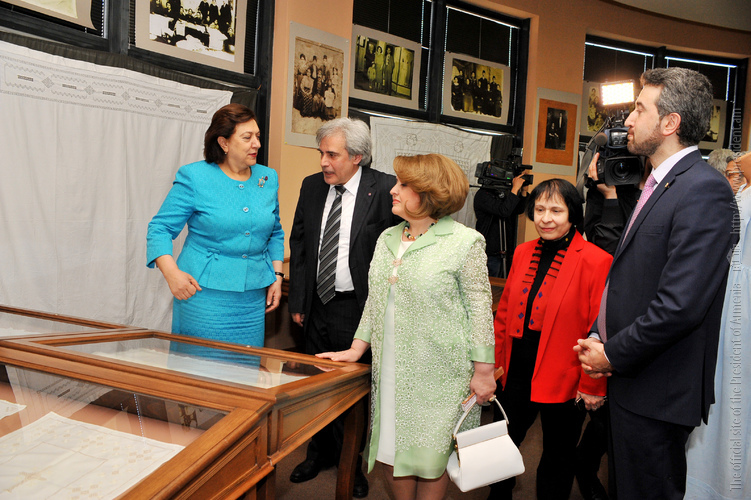 Первая леди Армении Рита Саргсян в Научно-исследовательском институте древних рукописей имени Месропа Маштоца – Матенадаране присутствовала на презентации книги учителя Академии АОБС имени М.Сарьяна в Алеппо Раздана Токмаджяна «Вышивание Айнтапа» – нового двухтомника об истории и традициях вышивания Айнтапа в рамках программы «Дни Айнтапа».