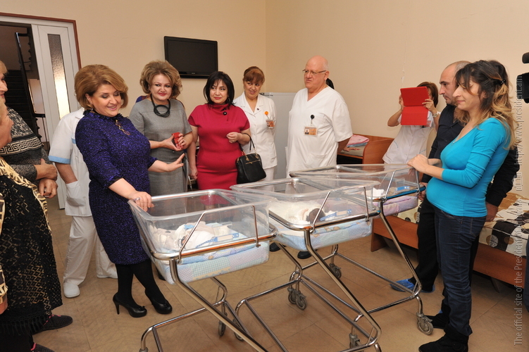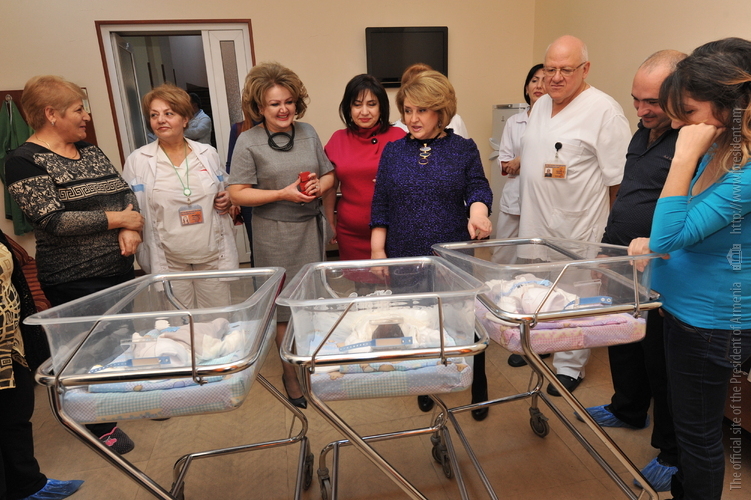 Рита Саргсян навестила родившиеся в Ереване две тройни
