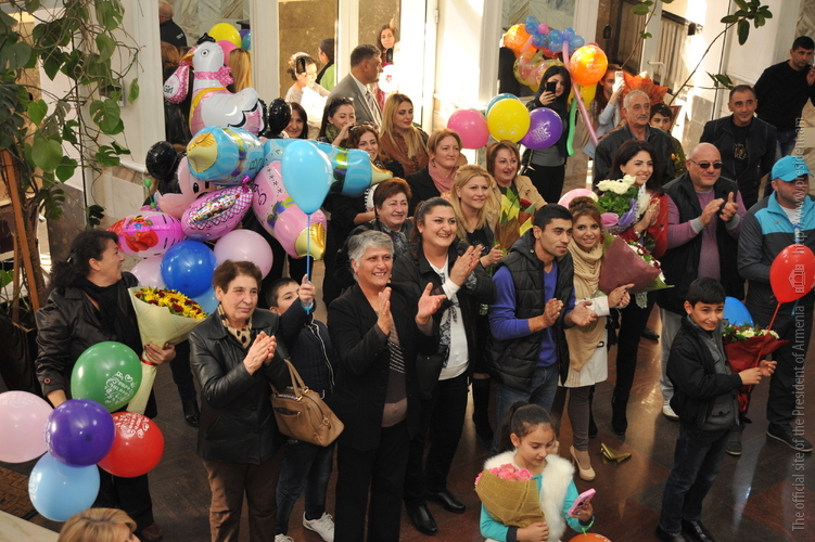 Первая леди Армении, почетный председатель Совета попечителей фонда репродуктивной медицины «Арагил» («Аист») Рита Саргсян 19 ноября в Научно-исследовательском центре охраны здоровья матери и ребенка навестила две тройни, родившиеся при содействии фонда репродуктивной медицины «Арагил». У проживающих в Ереване Гаспарянов и молодой семьи Симонянов из села Азох в Республике Арцах соответственно после 14 и 12 лет ожидания родились тройни. После долгих лет бесплодия Нарине и Сукиас Гаспаряны заимели двух сыновей и дочь (Анаит, Гагик, Вагаршак), а у Симонянов появились на свет две дочери и сын (Анна, Яна, Мгер). Поскольку малыши родились в год 100-летней годовщины Геноцида армян, Рита Саргсян передала им символичные золотые незабудки, отметив, что благодаря «самому доброму аисту» республики уже появились на свет 139 детей: 65 девочек, 74 мальчика. Рита Саргсян навестила также находящуюся под наблюдением врачей Аревик Геворкян, которая после 14-летней борьбы с бесплодием, опять же при содействии благотворительного фонда «Арагил», ожидает рождения близнецов.