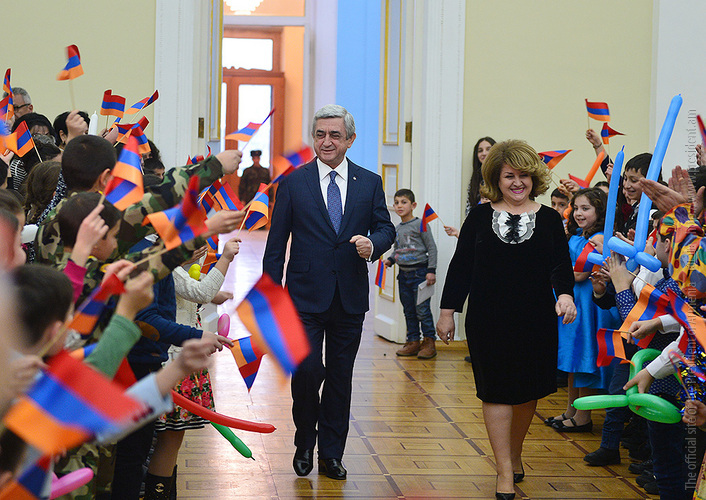 Президент Серж Саргсян и госпожа Рита Саргсян в связи с наступающими праздниками в резиденции Президента приняли многочисленных детей