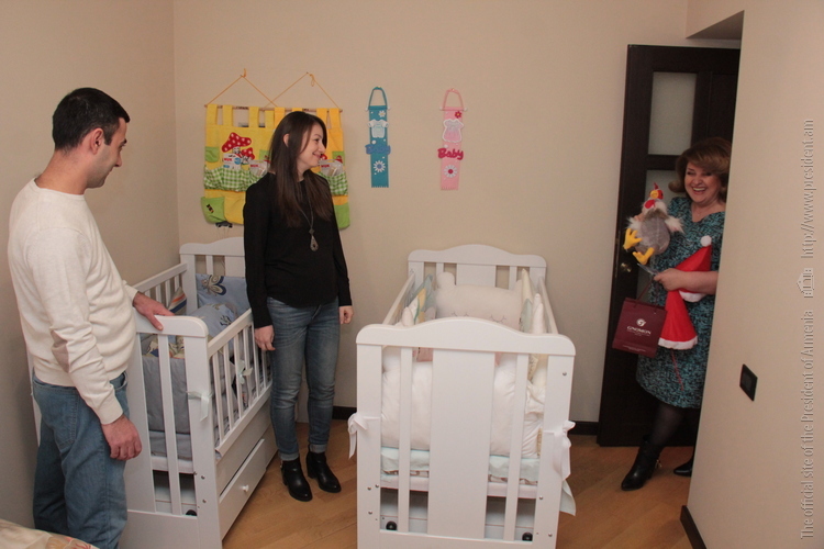 Первая леди РА, почётный председатель Совета попечителей фонда репродуктивной медицины "Арагил" Рита Саргсян накануне Нового года, 30 декабря 2016г. посетила детей, рождённых в Научно исследовательском центре охраны здоровья матери и ребёнка при содействии фонда "Арагил".