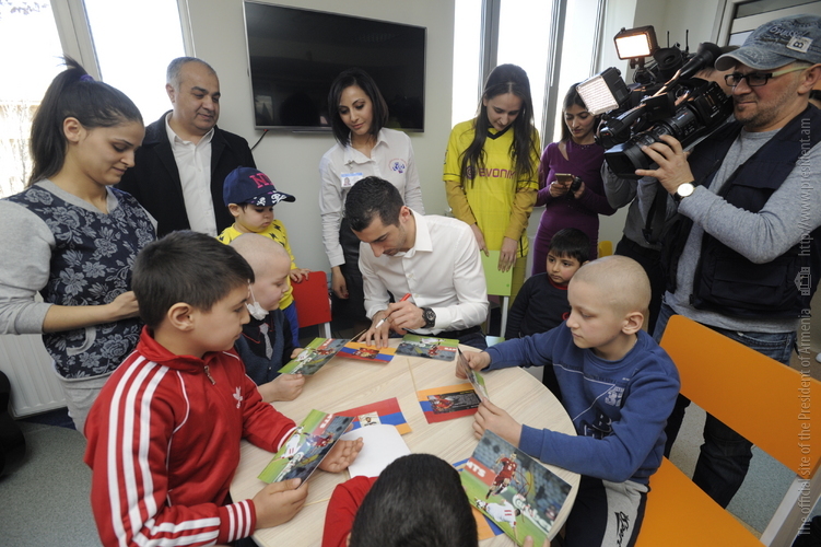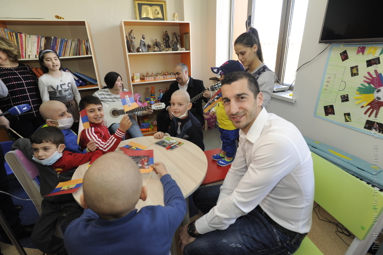 По приглашению Первой леди РА Риты Саргсян 23 марта с.г. футболист национальной сборной Армении Генрих Мхитарян посетил модернизированный Центр гематологии имени проф. Р.Йоляна.