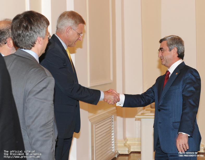 Президент Серж Саргсян сегодня принял прибывшую на Южный Кавказ с региональным визитом Тройку Евросоюза, возглавляемую министром иностранных дел Швеции Карлом Бильдтом.
