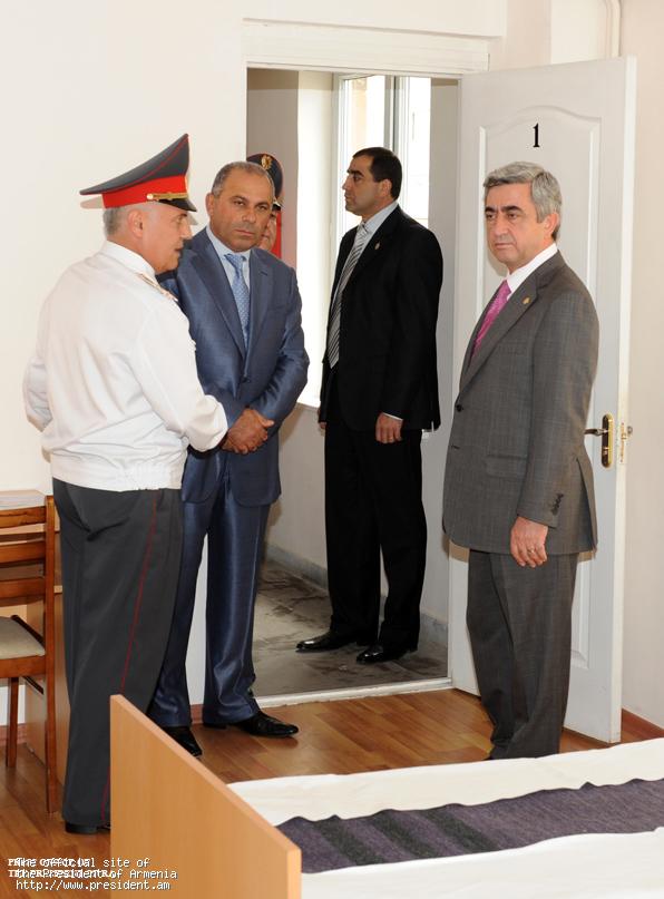 Президент Республики побывал также в академии полиции, ознакомился с условиями учебного процесса. Серж Саргсян поручил в бюджете следующего года предусмотреть средства для капитального ремонта здания академии.