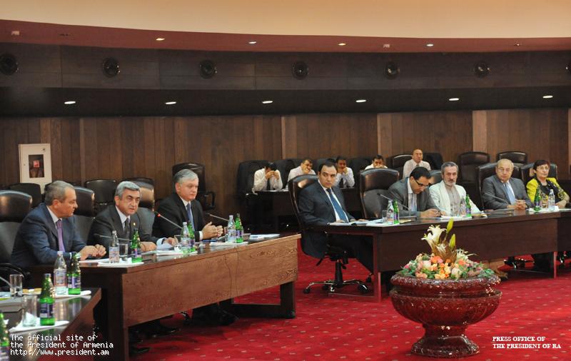 "Это третья встреча в таком формате. Как вы помните, предыдущие два обсуждения были посвящены мирному урегулированию Нагорно-Карабахской проблемы и преодолению последствий финансово-экономического кризиса. Лично для меня и, судя по слышанным мною отзывам, для большинства участников, эти обсуждения были важны, необходимы не только в плане возможности выслушать мнения, но и с точки зрения внесения определенных исправлений в нашу дальнейшую деятельность.