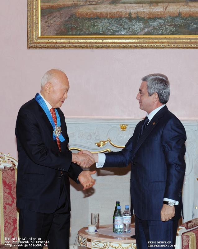 Приветствуя высокого гостя, Президент Саргсян сказал: "В мире мало тех, кто не восхищается сингапурским чудом, и все очень четко представляют, что Вы, будучи первым Премьер-министром, являетесь автором и организатором этого дела. И конечно, этот пример очень желателен для малых государств".
