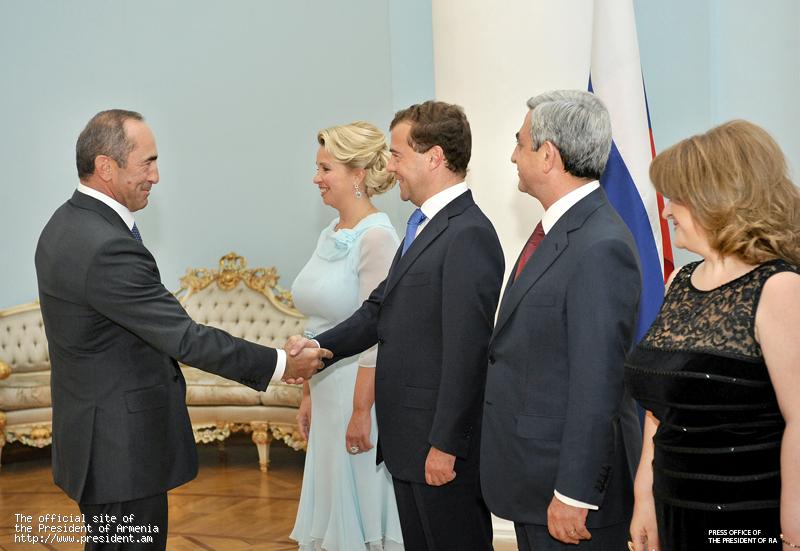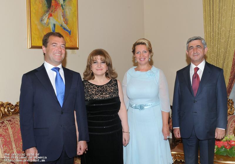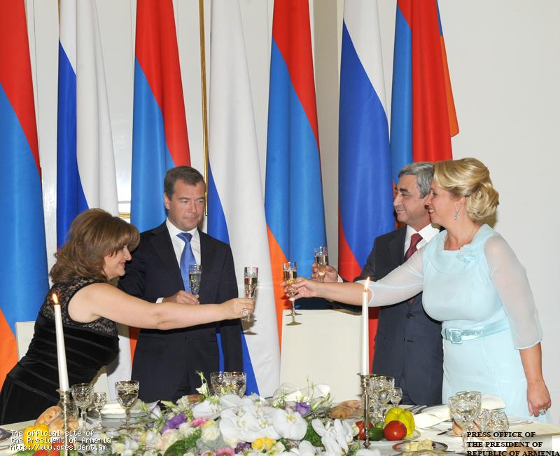 От имени Президента Сержа Саргсяна в честь Президента РФ Дмитрия Медведева был дан государственный ужин