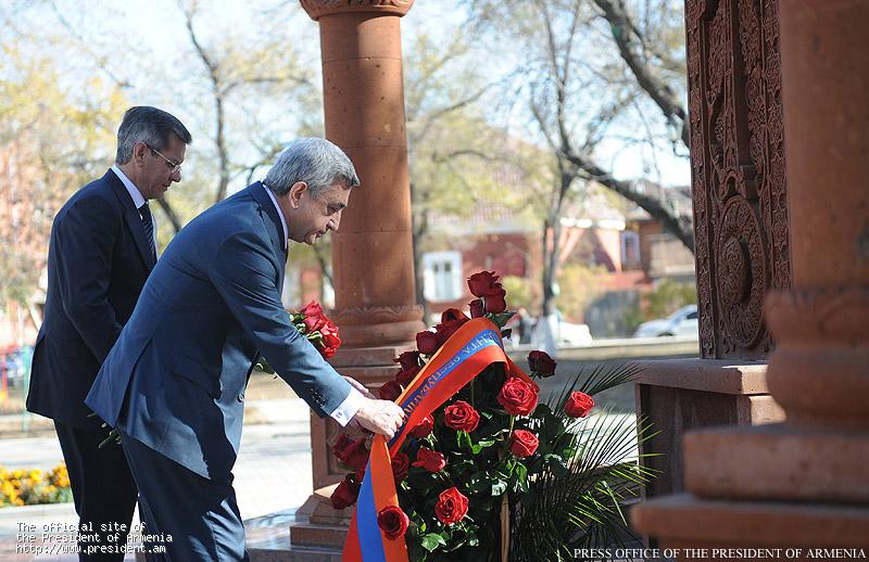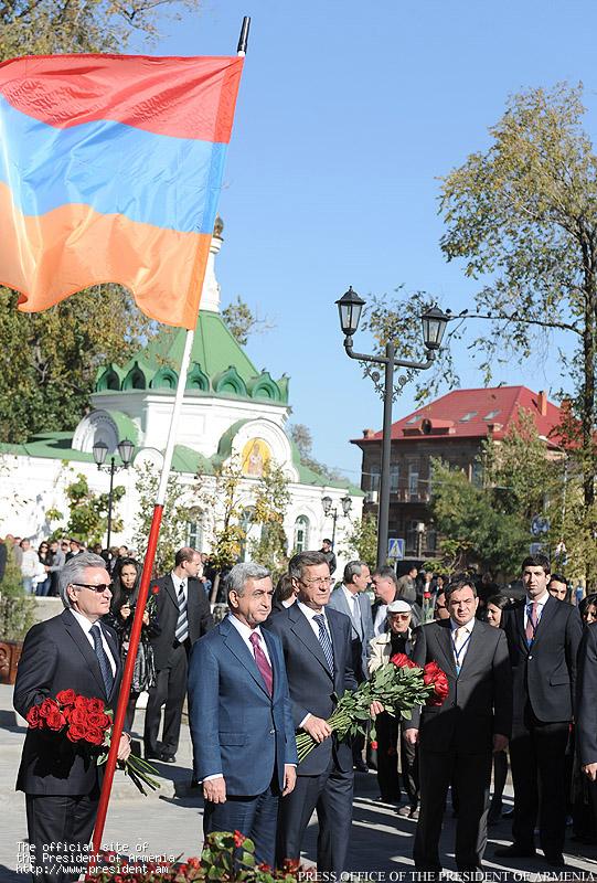 Президент Саргсян посетил находящийся в центре города армянский памятник и возложил цветы к памятнику-хачкару, который размещен на месте разрушенной в 1930-ые годы армянской церкви в память о построенной еще в 1706 году армянской церкви и в ознаменование 290-летия основания в Астрахани епархии Армянской Апостольской Святой Церкви. Вместе с главой Республики памятник посетили духовный пастырь астраханской церкви Святой Рипсиме отец Себеос Галачян, представители местного руководства и армянской общины.
