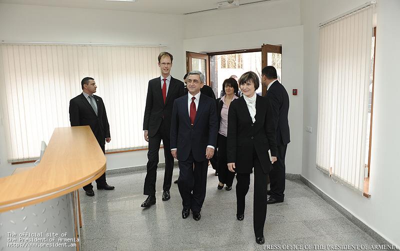 Президент Серж Саргсян и находящаяся в Армении с официальным визитом Президент Швейцарской Конфедерации Мишелин Кальми-Рей сегодня приняли участие в церемонии открытия в Армении посольства Швейцарии.