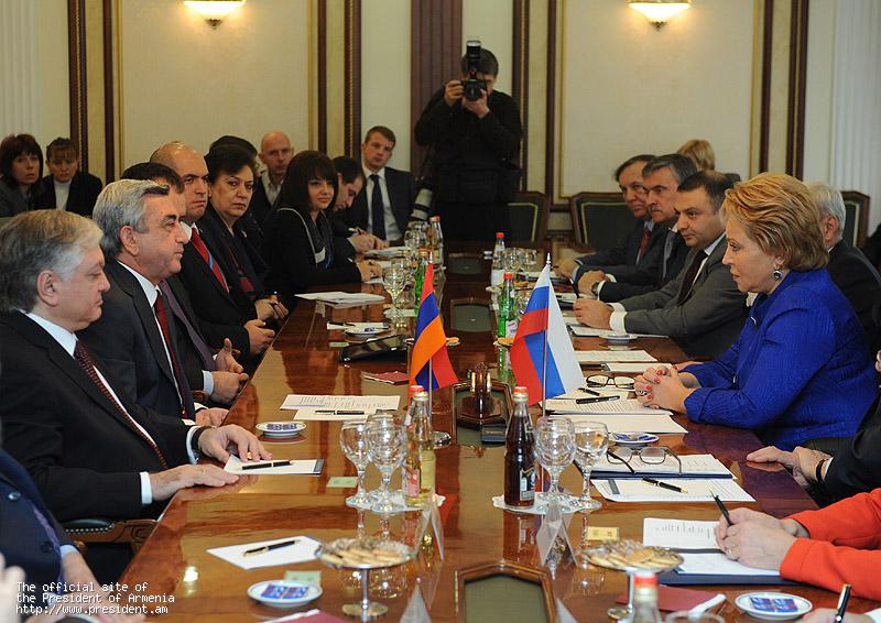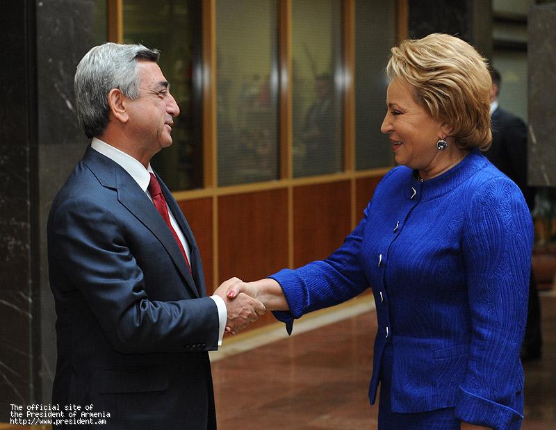 В начале встречи Президент Серж Саргсян прежде всего поздравил Валентину Матвиенко по поводу избрания председателем Совета Федерации РФ, пожелал успехов в деятельности на этом высоком посту.