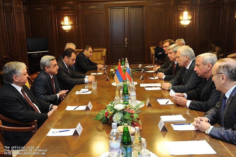 Во время встреч Президента РА с руководителями двух палат парламента РФ стороны отметили, что государственный визит Президента Сержа Саргсяна в РФ протекает достаточно продуктивно, подписан ряд документов, касающихся развития и расширения армяно-российского сотрудничества в различных областях. По словам собеседников, они открывают новые перспективы в деле максимального укрепления двусторонних отношений. Было отмечено, что между двумя государствами – партнерами в политической, экономической, военной, гуманитарной сферах тесное сотрудничество и взаимодействие на высоком уровне однозначно созвучны духу многовековой дружбы армянского и русского народов.