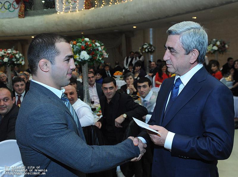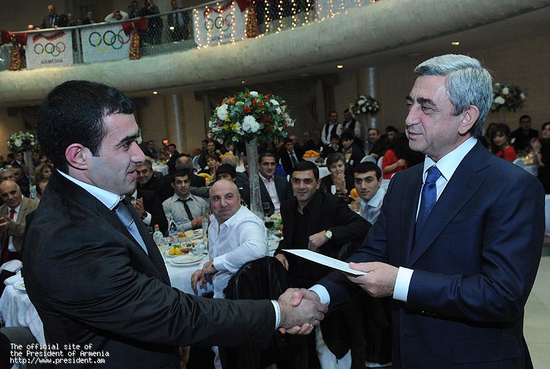 В своем поздравительном выступлении глава Республики, не разделяя ту точку зрения, что 2011 год был годом ожиданий, отметил, что в спортивном плане год, по его мнению, а также по мнению большинства нашего народа, был успешным. «Я думаю, уже давно наш народ не проявлял такого интереса к футболу, и сборная Армении по футболу заставила еще раз считаться с этим прекрасным спортом, его результатами. Думаю, что очень многие из нас пережили многочисленные моменты удовольствия, гордости, и даже те, кто до недавнего времени не интересовались футболом, сейчас произносят имена Генриха Мхитаряна и Юры Мовсисяна. Думаю, это большой успех. В 2011 году шахматная сборная еще раз доказала, что Армения – шахматная держава. Здесь нет сомнения, и во главе с нашим блестящим шахматистом Левоном Ароняном наша сборная целиком пополнила свою коллекцию. У нас были все титулы, не было только титула чемпиона мира. Вот теперь и этот титул у нас есть.