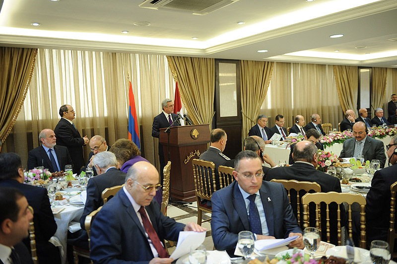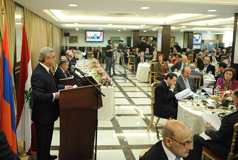 Мы всегда будем с признательностью вспоминать оказанную ливанским народом неоценимую помощь, когда вследствие злодеяния, организованного в Османской Турции на государственном уровне, была подвергнута геноциду и лишилась родины проживающая и созидающая на своей земле многочисленная часть армянского народа. Гостеприимный, доброжелательный и терпимый Ливан стал одной из тех гаваней, где осколки армянства нашли спасение и убежище, окрепли, встали на ноги, активно участвуя в политической, социально-экономической, культурной жизни Ливана и интегрируясь в нее, одновременно сумев сохранить богатую национальную культуру и ценности.