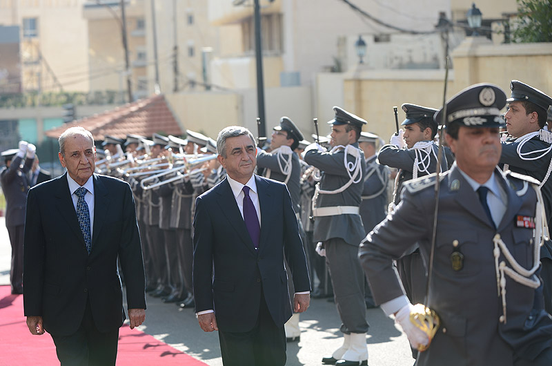 Этот год знаменателен двадцатилетием установления дипломатических отношений между Арменией и Ливаном. В ходе моего визита у меня был повод говорить о высоком уровне нашего политического диалога, экономического сотрудничества, контактов между людьми. Хочу здесь особо остановиться на развитии парламентских связей между Арменией и Ливаном, которые в армяно-ливанских отношениях нового времени были одними из первых зафиксированы соглашением еще в 1993 году. Этим мы, думаю, обязаны и лично Вам, господин Берри, за то, что в течение прошедших двух десятилетий Вы всегда были в авангарде армяно-ливанского сотрудничества и братства. Армяно-ливанское межпарламентское сотрудничество и сегодня имеет динамичный характер.