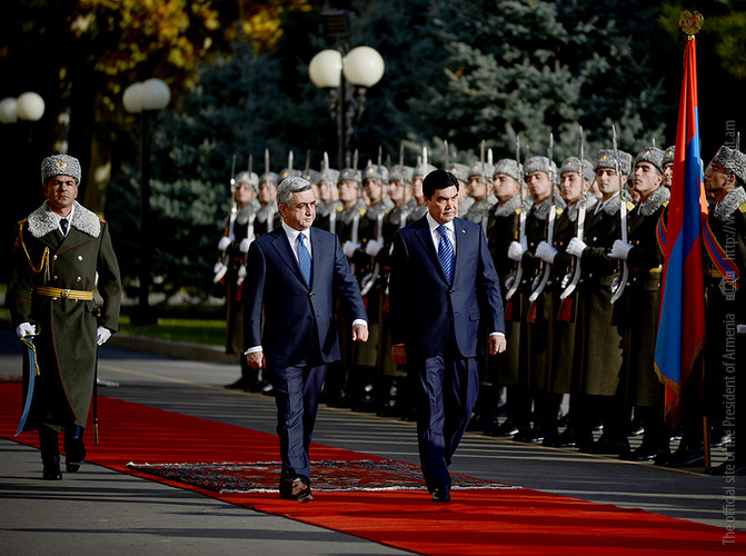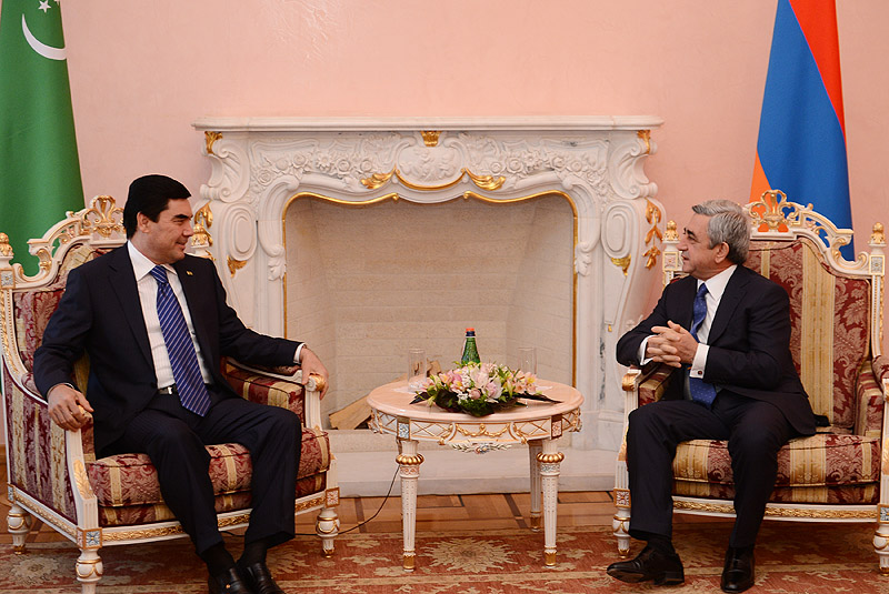 Президент Туркменистана поблагодарил Президента Сержа Саргсяна за приглашение и оказанный возглавляемой им официальной делегации теплый прием, отметив, что такого же приема несколько дней назад удостоились прибывшие в Армению другие члены туркменской делегации – деятели культуры и искусства.