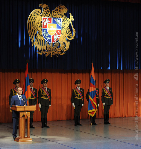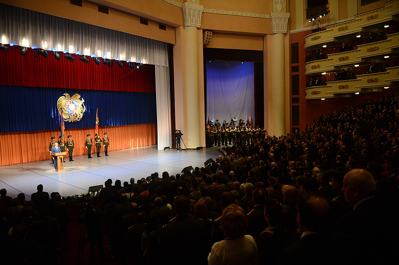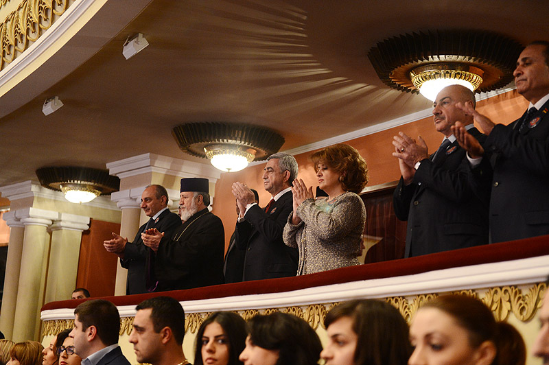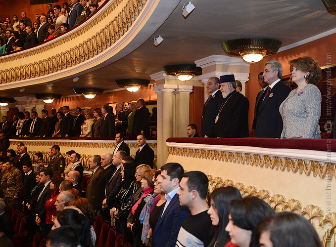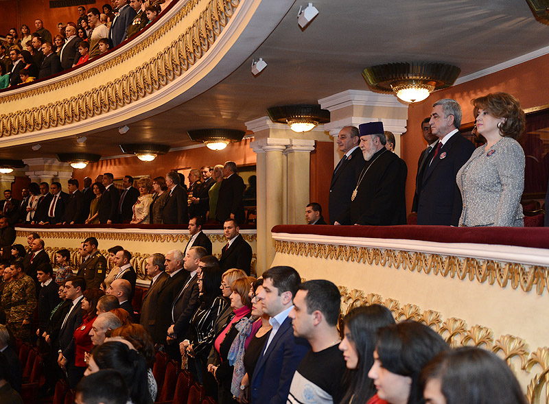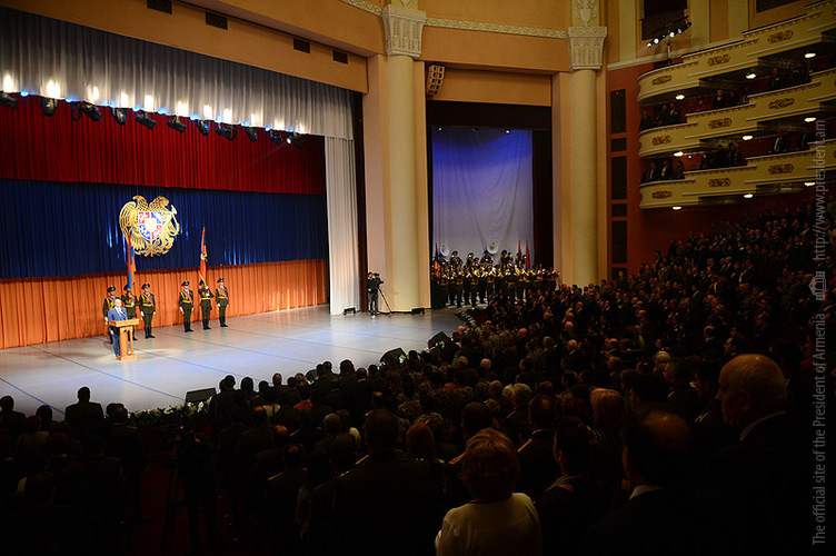 Президент Серж Саргсян и госпожа Рита Саргсян сегодня в Национальном академическом театре оперы и балета имени А.Спендиаряна присутствовали на праздничном торжестве, посвященном Дню Армии – 22-летию Вооруженных сил Республики Армения.